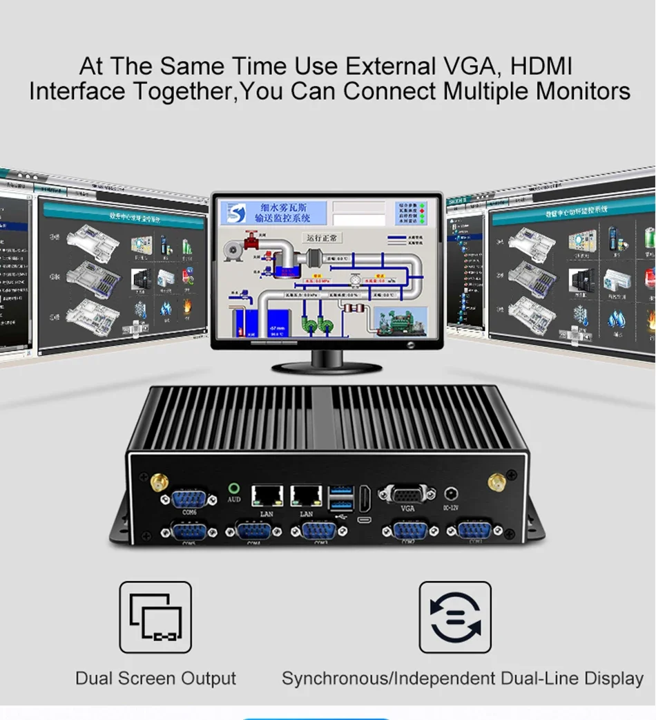 Comprar Mini PC Industrial sin ventilador LAN Dual 6 * COM 4G LTE Core i5 4200U i7 4500U J1900 HD WiFi 6 * RS232 RS485 Windows 11 computadora Linux