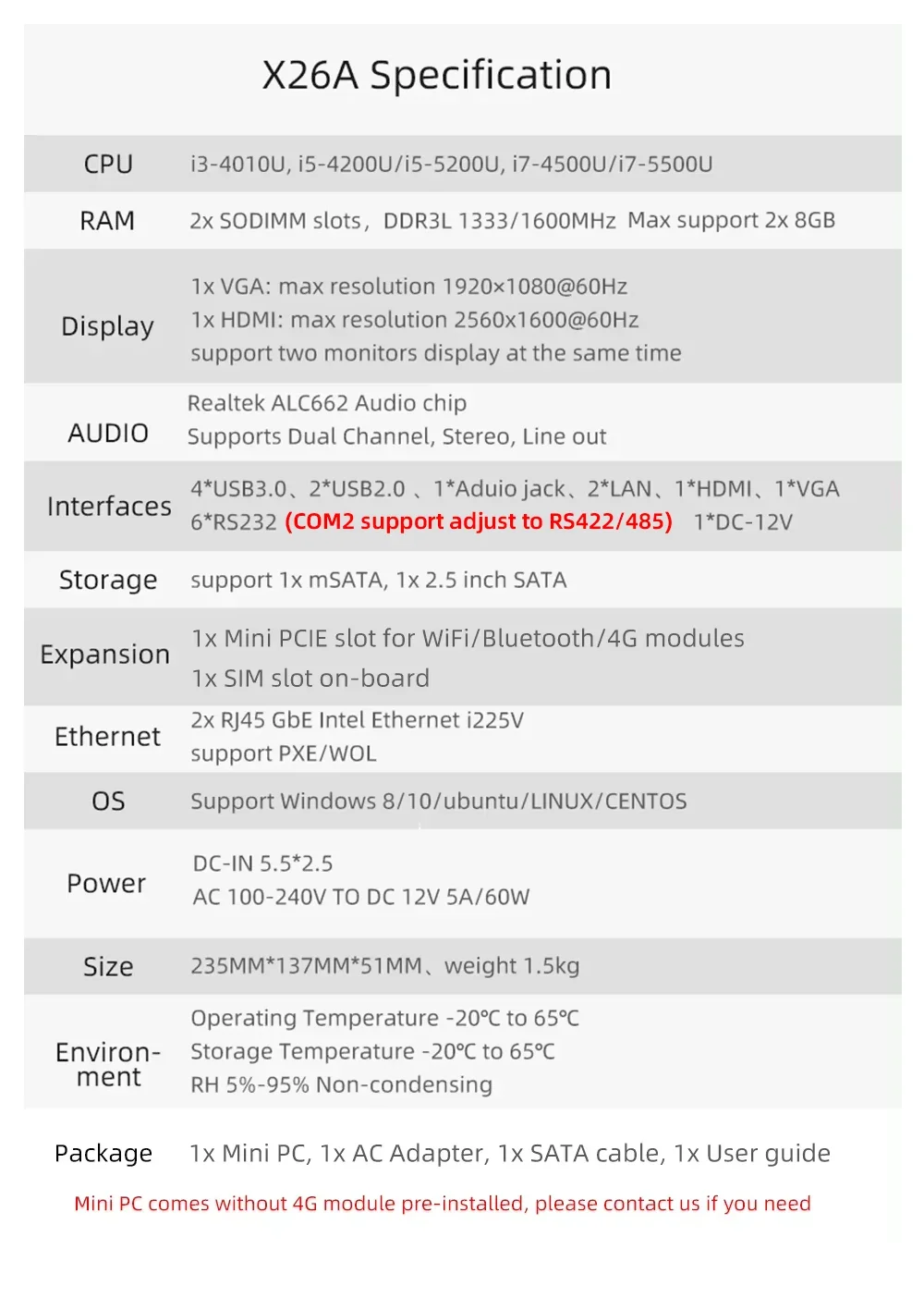 Acerca de los parámetros principales del producto X26A 2LAN 6COM 6USB: