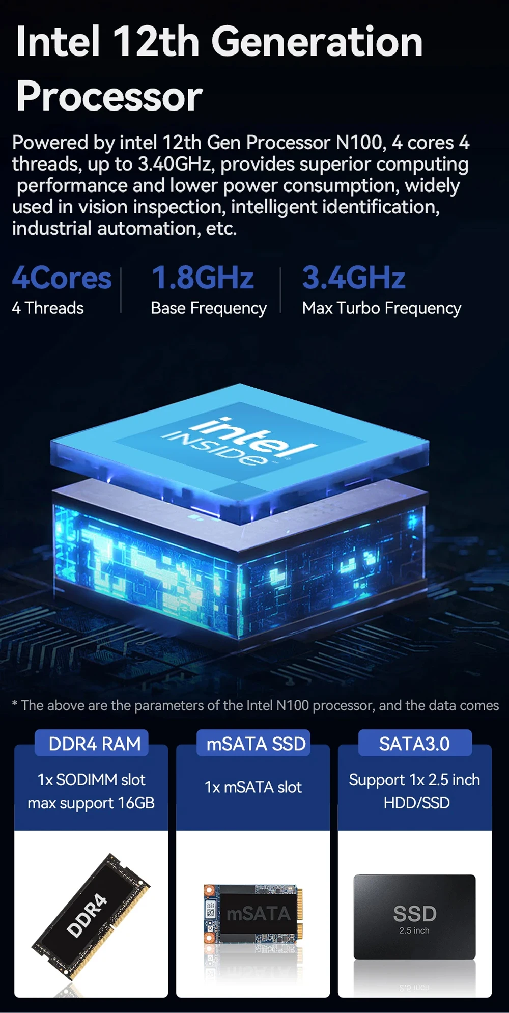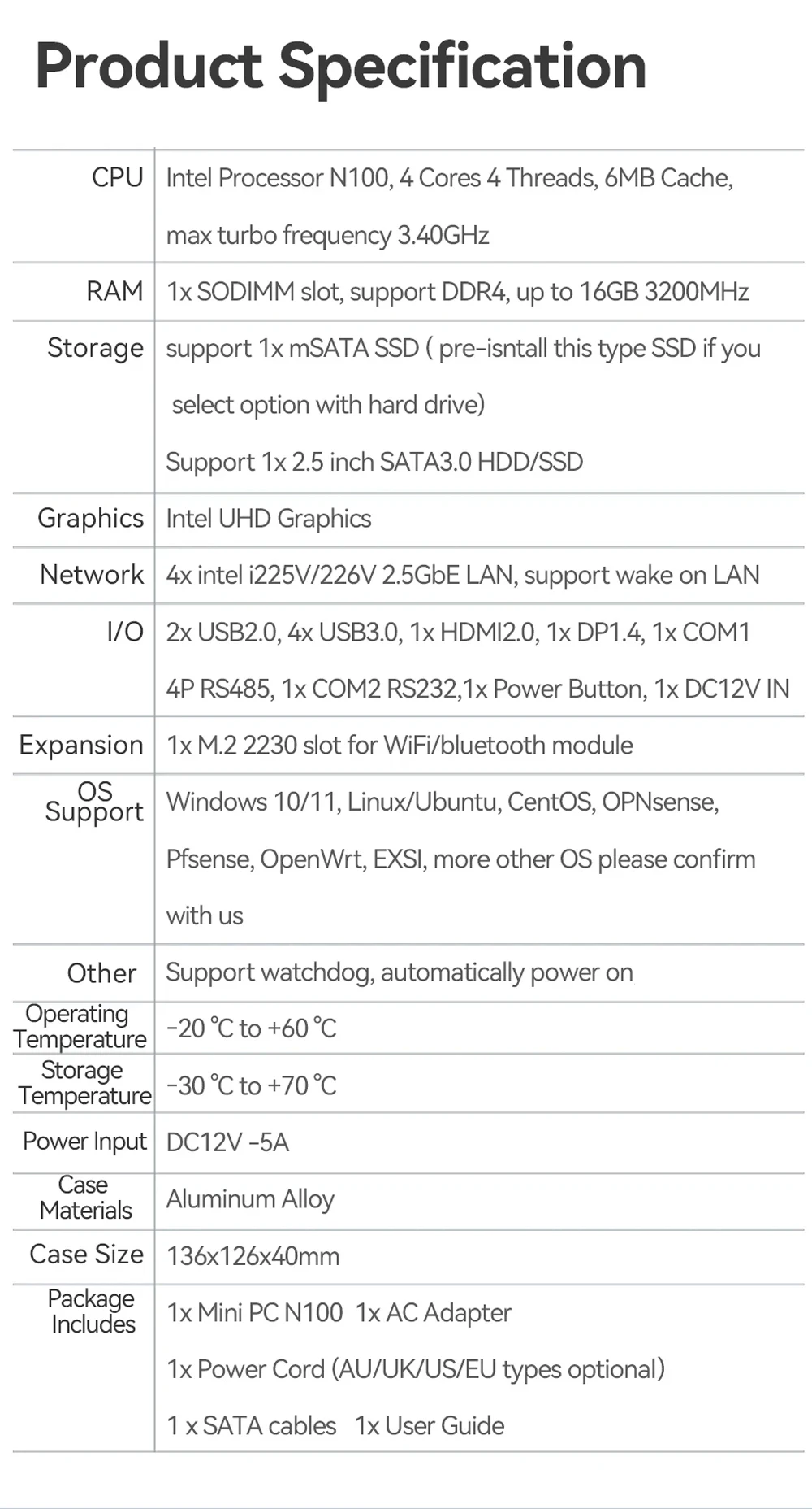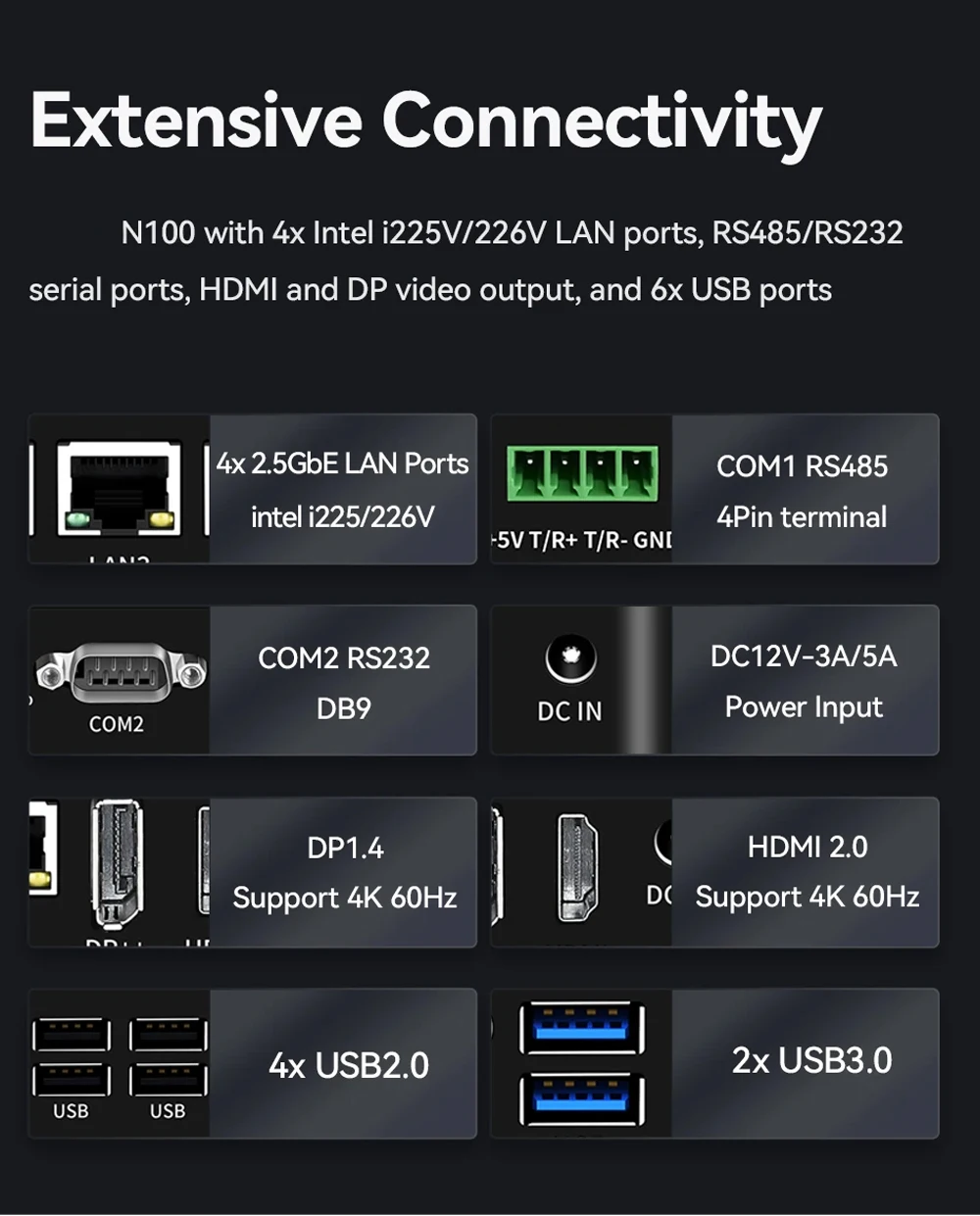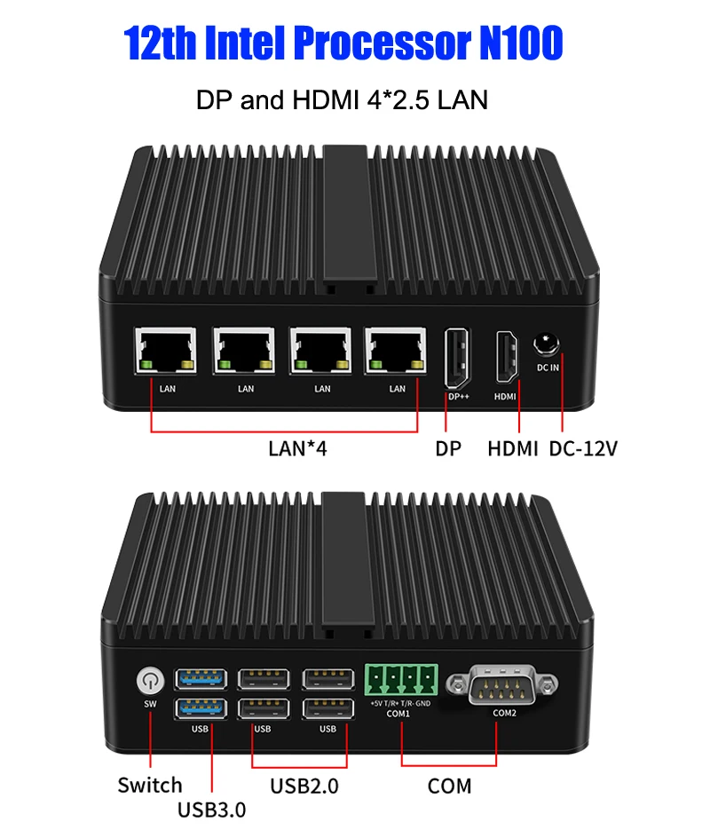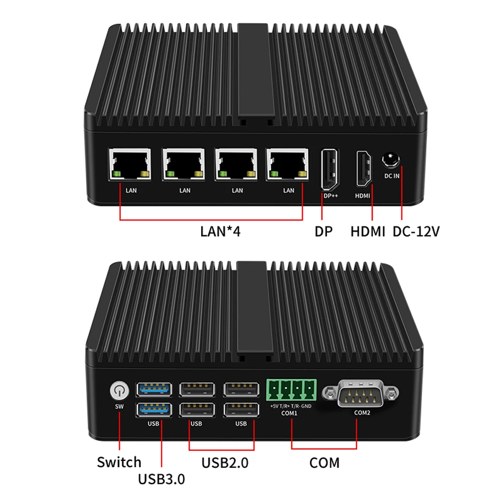 Comprar Mini PC Industrial sin ventilador N100 J6426 Intel Quad Core 4 * LAN 2,5G 2 * COM RS485 RS232 Win11 ordenador Pfsense Firewalls enrutador suave