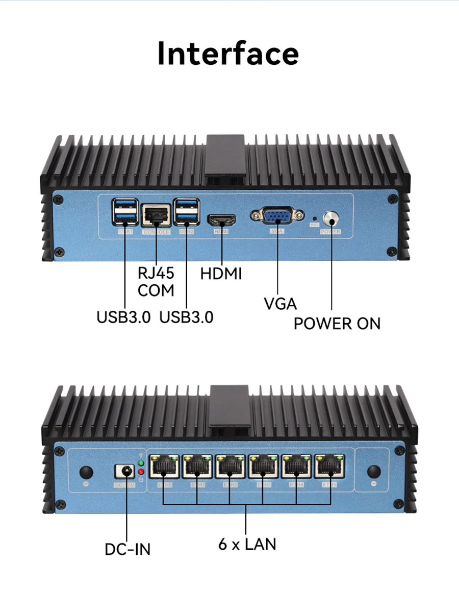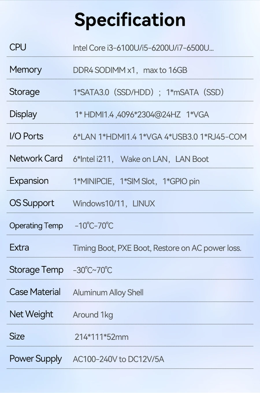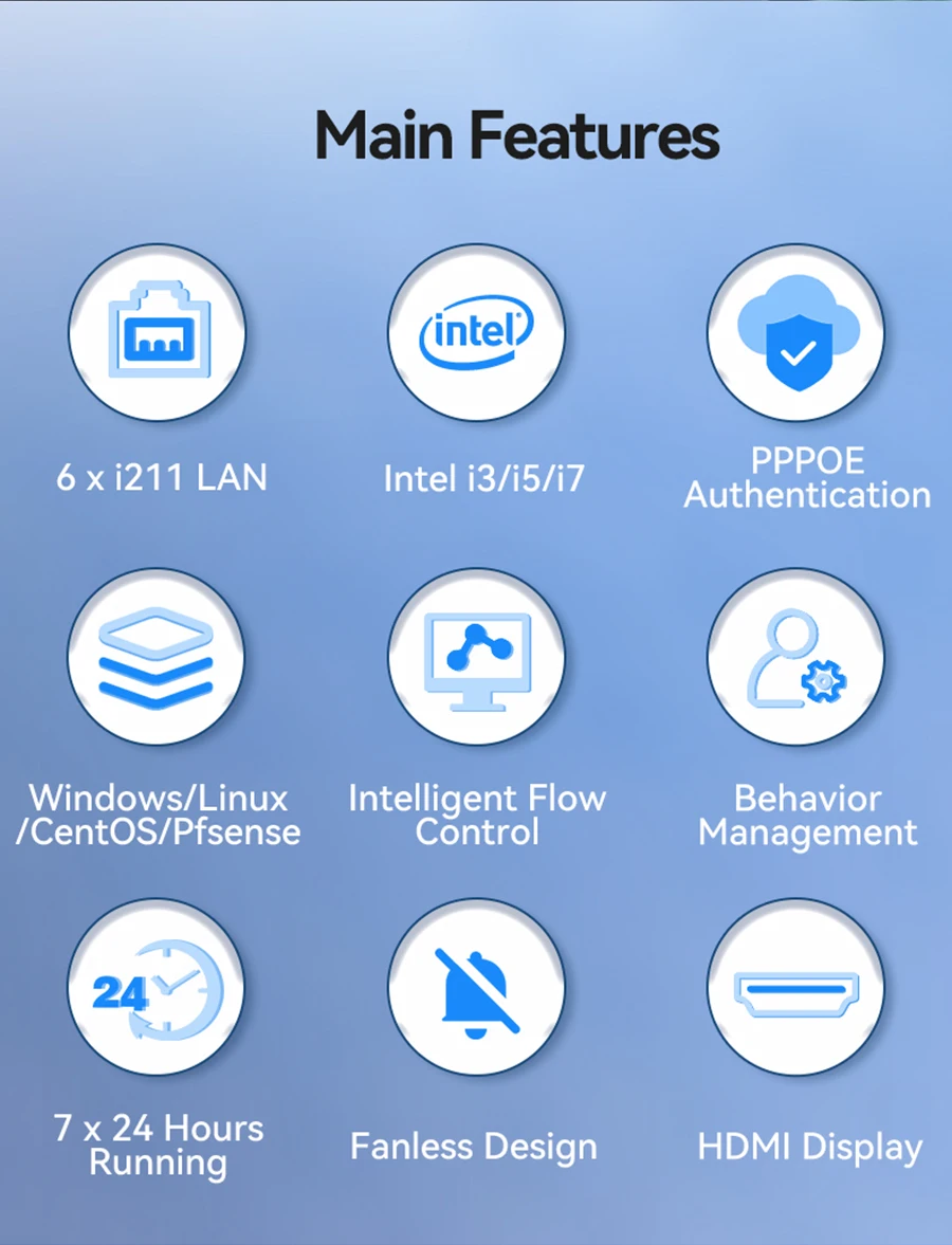 Comprar Mini PC Industrial sin ventilador Router 6 x Intel I211 LAN Core i7 6500U i5 Pentium 4415U DDR4 PfSense Firewall Device Server