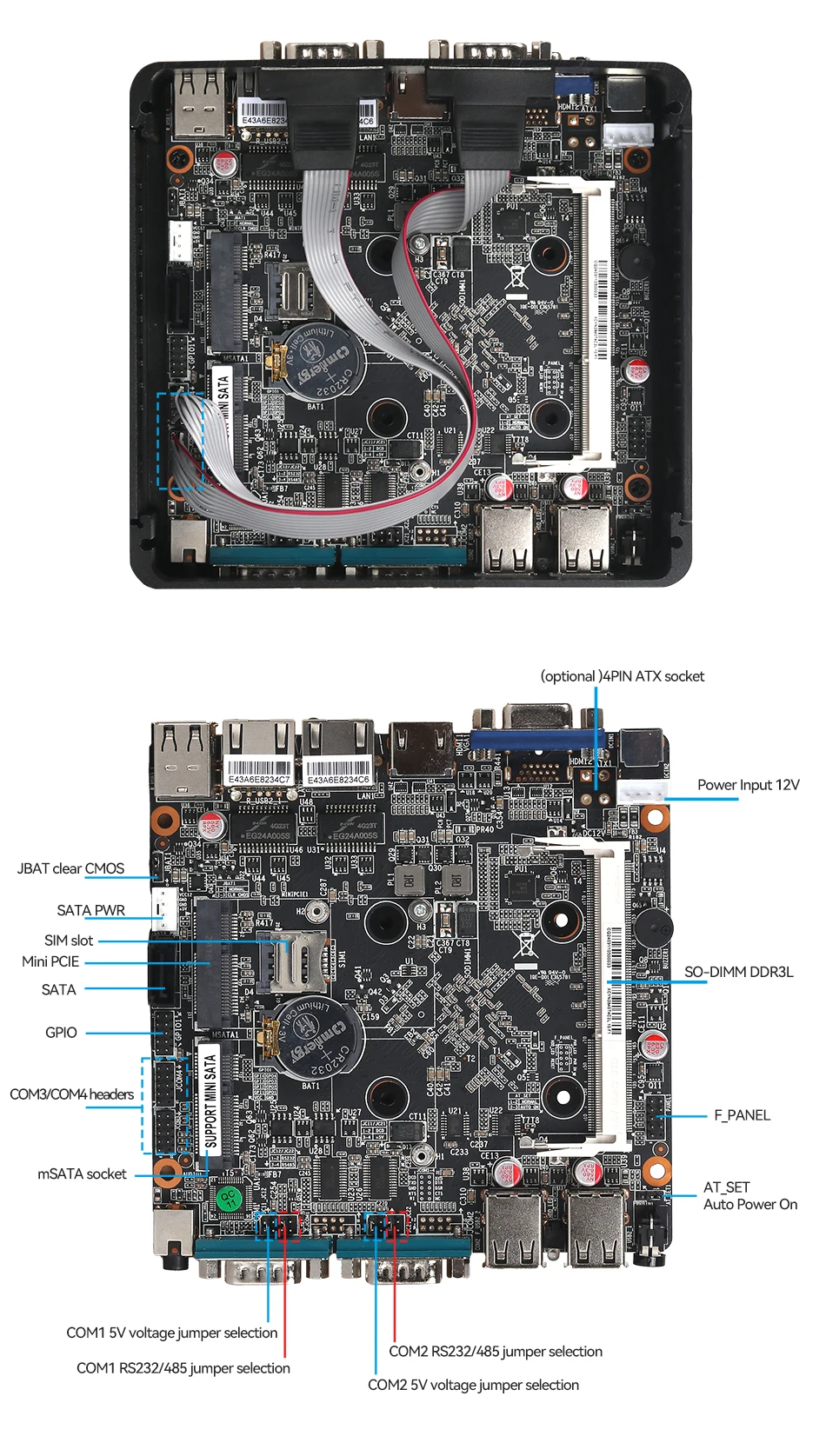 1x COM1 RS232/RS485 ajustable en puente de placa base