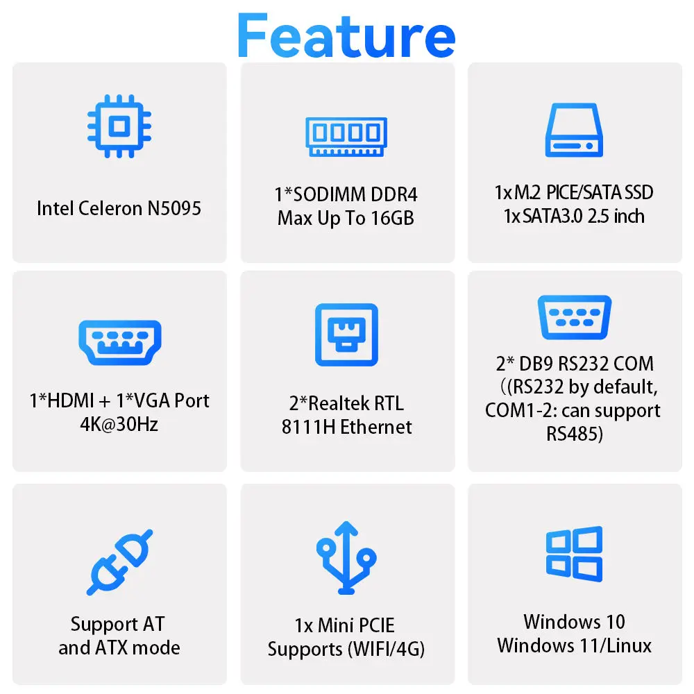 X30G Fanless Industrial Mini Computer, Intel Celeron N5105 Processor, DDR4 RAM, M.2 SSD NVMe, 2x Gigabit Ethenet, 2x COM Ports RS232, 4x USB3.0 Ports, HDMI+VGA Display, M.2 Slot Expansion WiFi/4G LTE, Support Windows, Linux, Openwrt