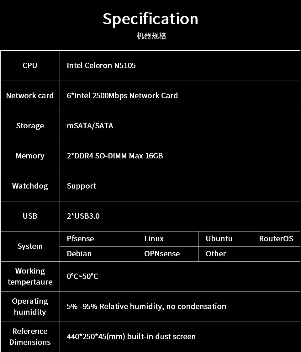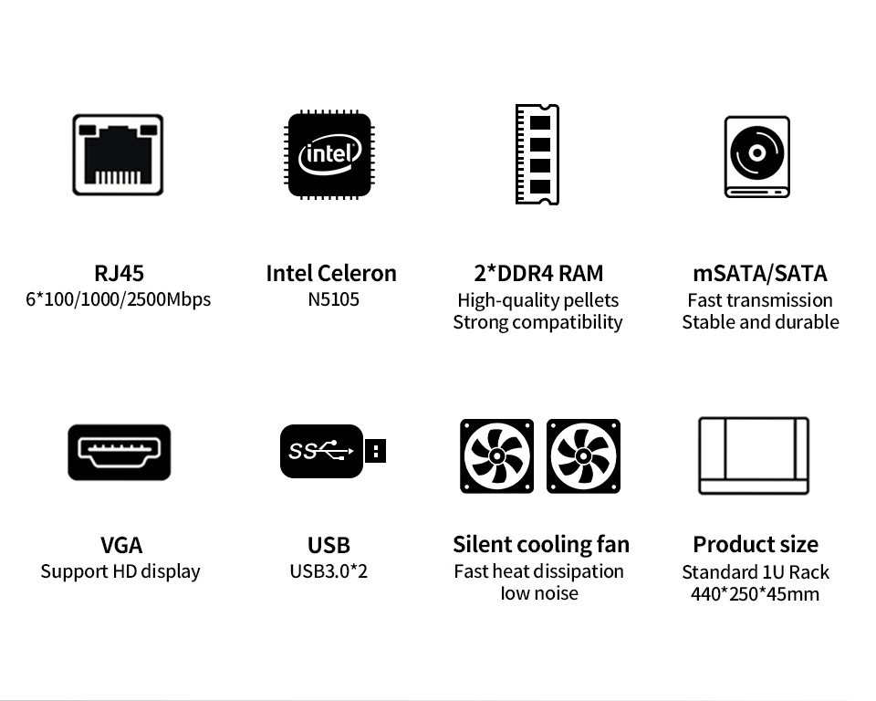 Comprar Mini PC INTEL CELERON N5105 6LAN 2500M 2,5G VPN Firewall Pfsense Ubuntu Linux Soft Router Network PC, servidor Rackmount BKHD 1U