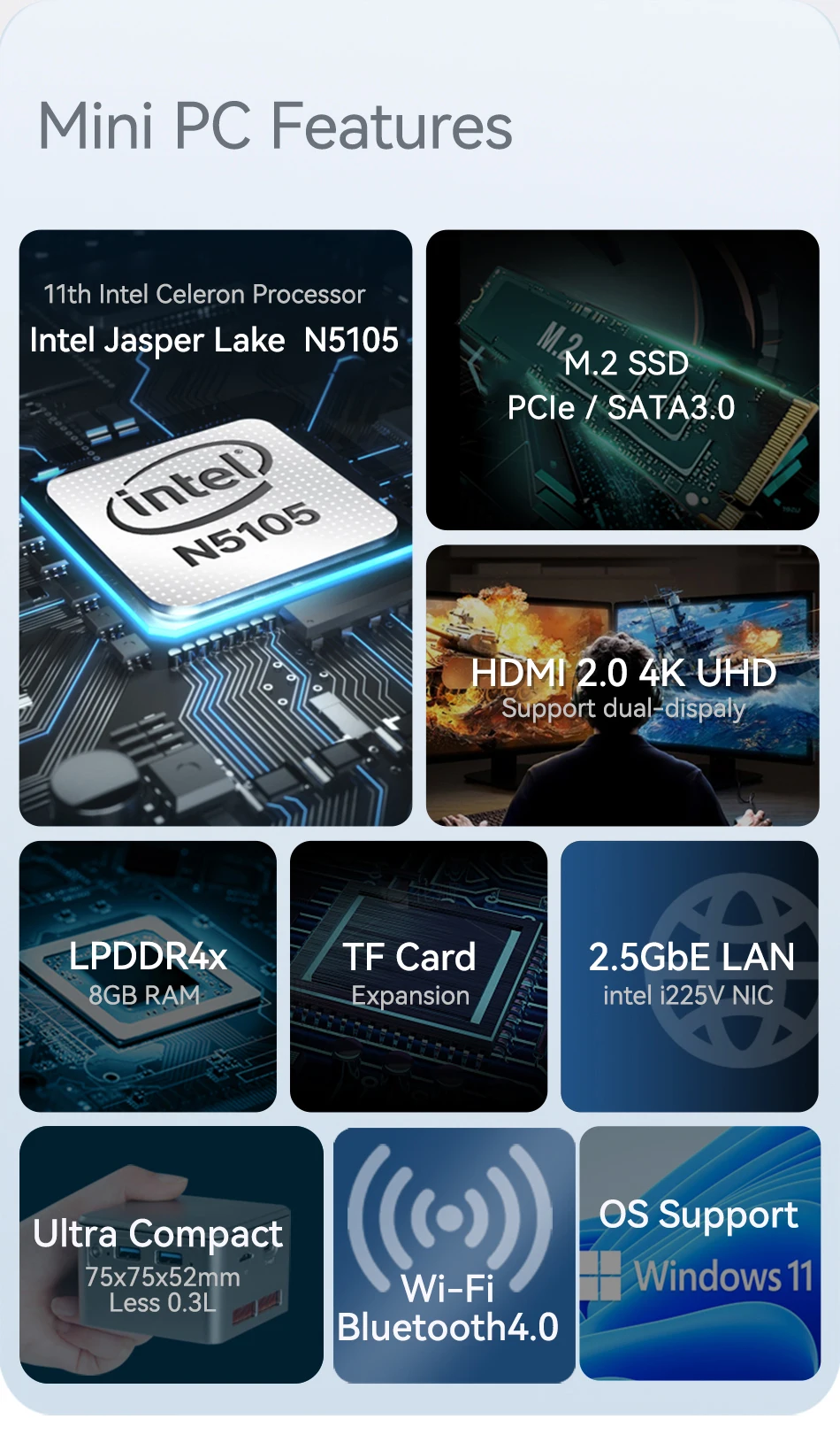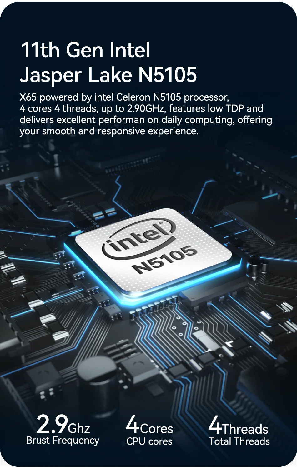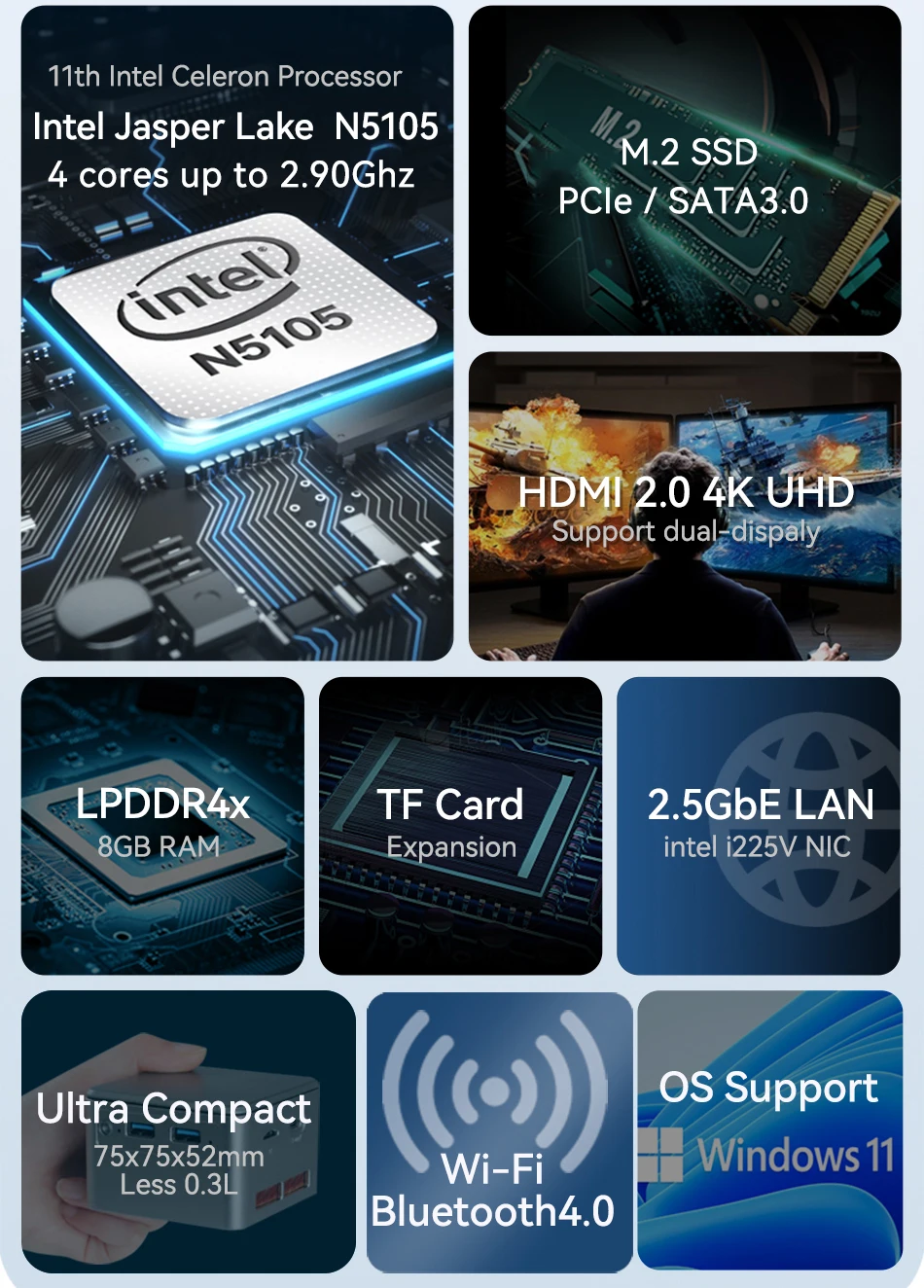 Comprar Mini PC Intel Celeron N5105, 8GB, LPDDR4, 128GB, M.2, NVME, SSD de doble banda, WiFi, Bluetooth 4,0, 2.5GbE, LAN, 4K, UHD, Windows 11/10