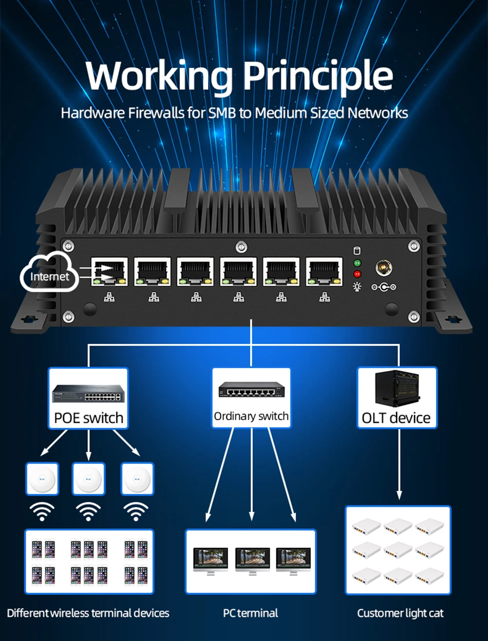 Comprar Mini PC Intel Core i7 10710U i5 1245U Firewall Router 6x 2,5G Ethernet RS232 4G ranura SIM compatible con Windows Linux Pfsense OPNSense