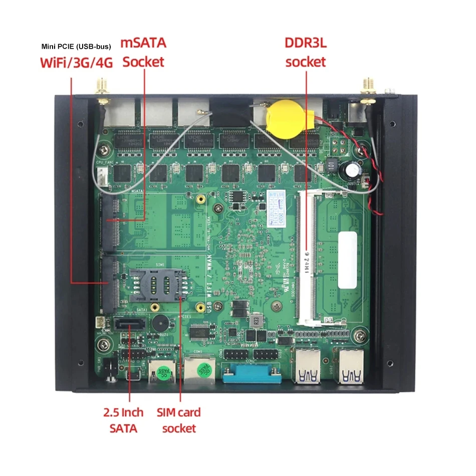 NOTA: La mini PC viene sin WiFi ni módulos 3G/4G LTE instalados. Si necesita agregarlos, contáctenos.