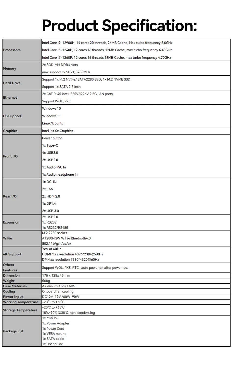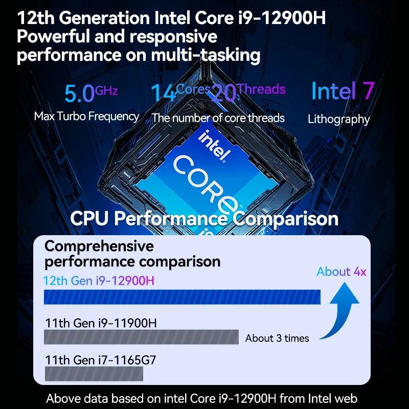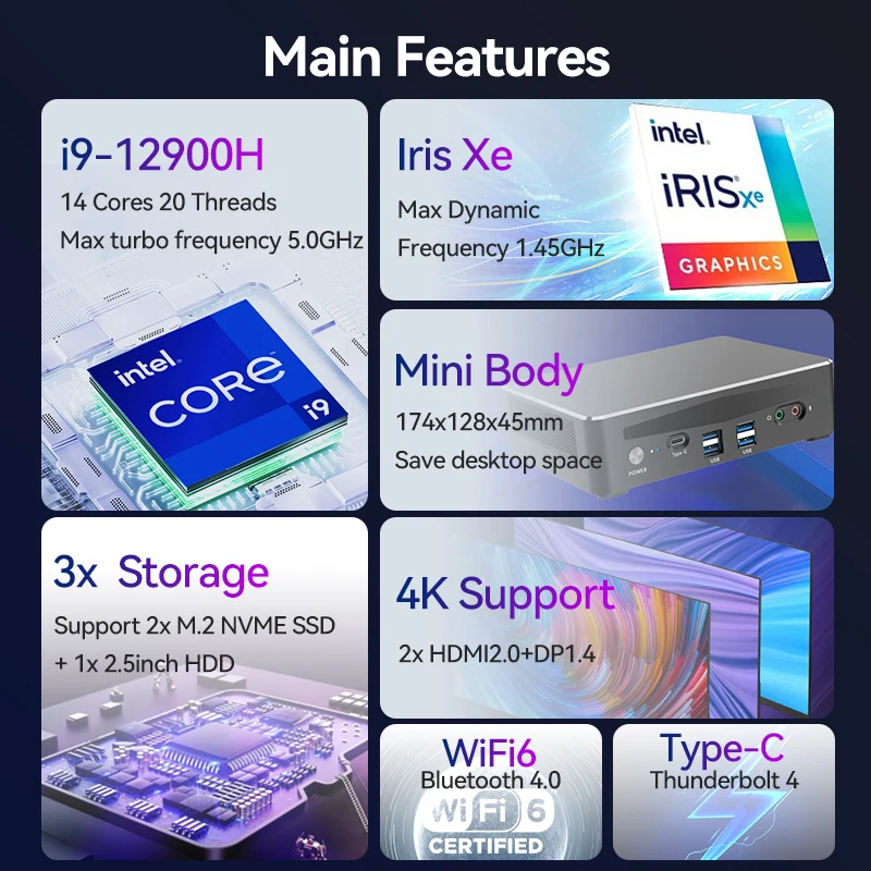 Comprar Mini PC Intel Core i9-12900H, Ordenador de oficina de 12ª generación, 14 núcleos, hasta 5,0 GHz, DDR4, M.2, NVME, SSD, WiFi6, salida 4K, Windows 10/11