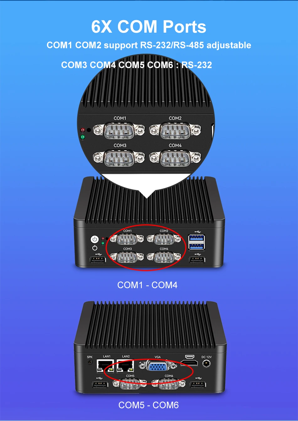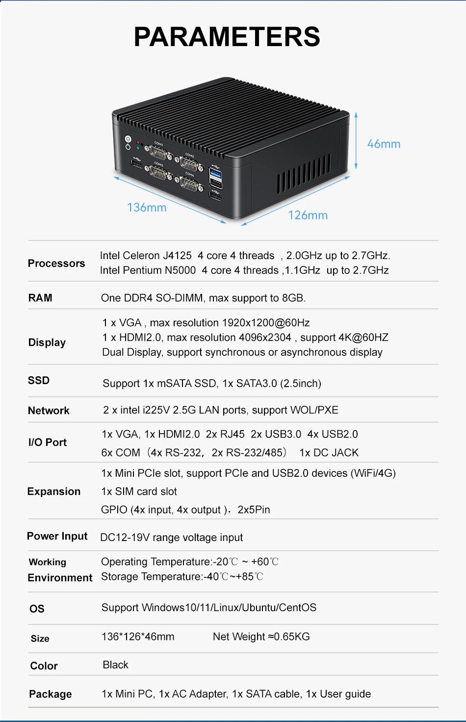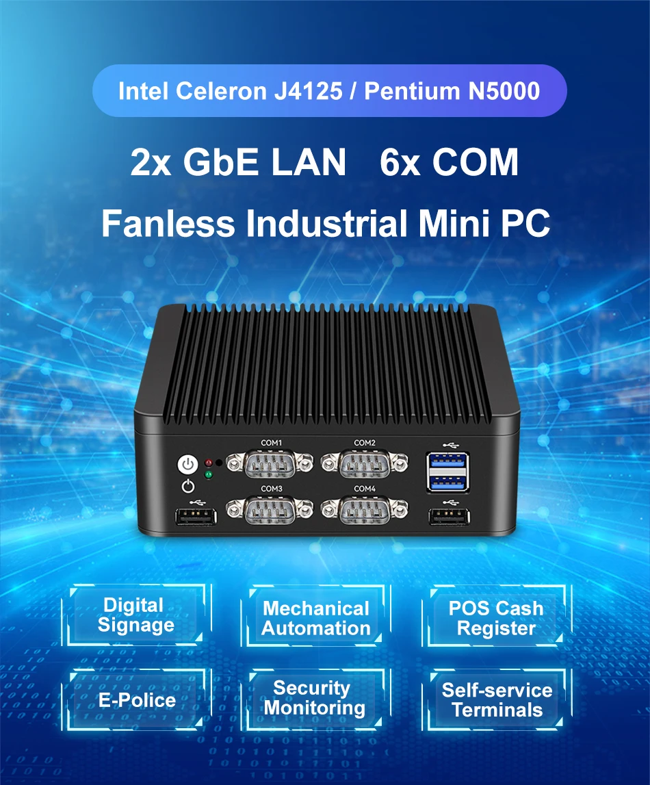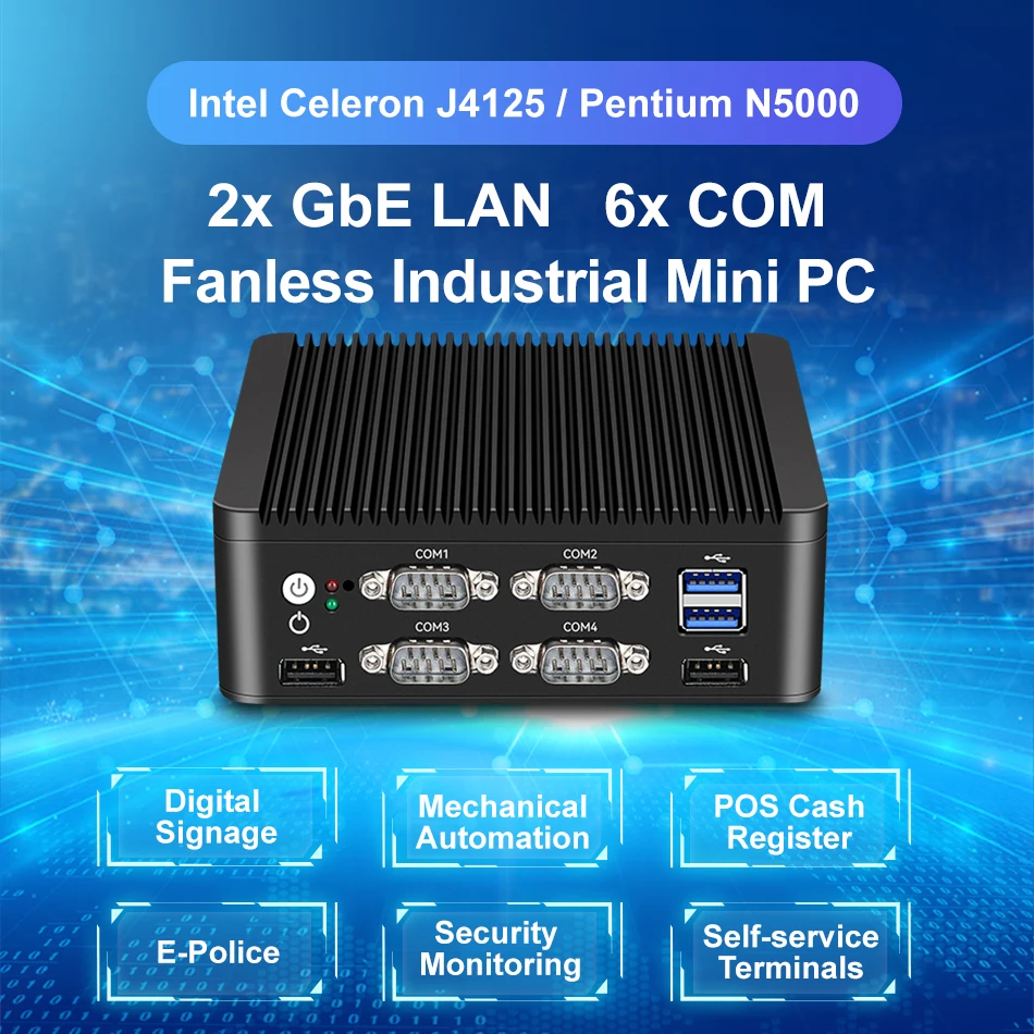 Comprar Mini PC Intel Pentium N5000 J4125 2x GbE LAN 6x COM RS232/RS485 6x USB GPIO expandible compatible con SIM 4G WiFi Windows 10/11 Ubuntu