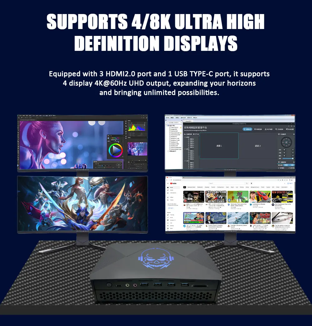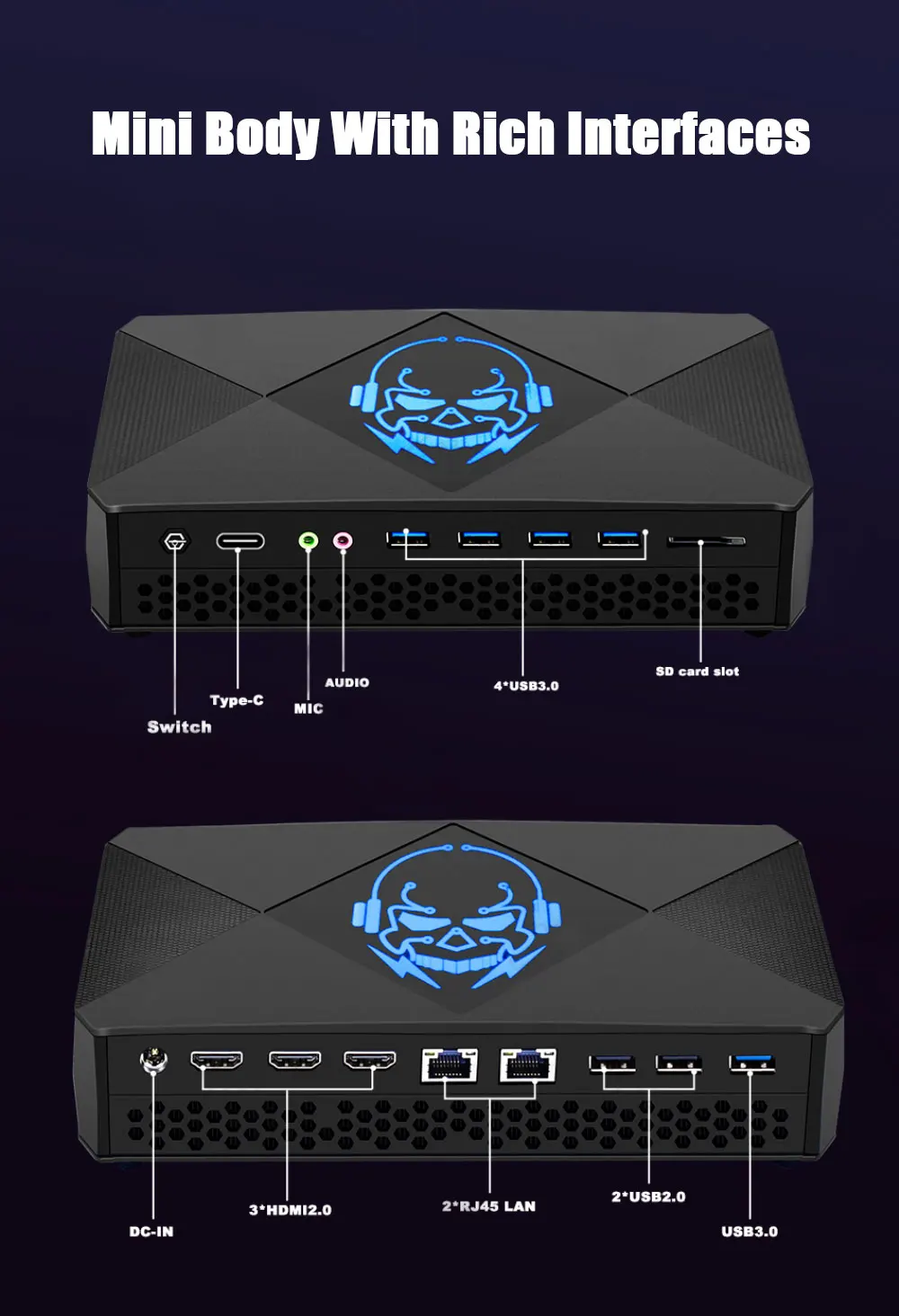 Comprar Mini PC para juegos Intel Core i9-12900HK NVIDIA RTX3060 Gráficos de 12 GB 2 ranuras de RAM 2x M.2 NVME SSD Win11 3x HDMI tipo C WiFi6