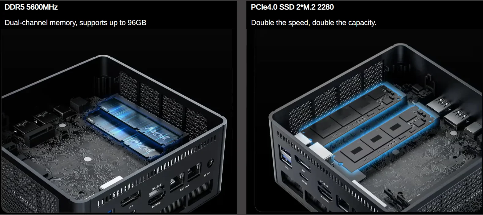 NVMe PCIe4.0 dual y USB4.0 dual de 40 Gbps (thunderbolt 4, pantalla compatible, carga PD, e-GPU)