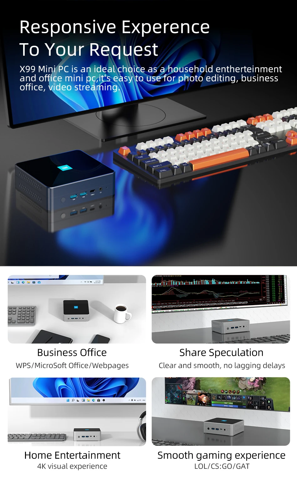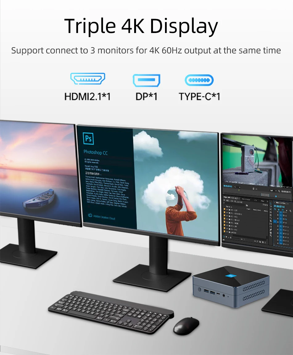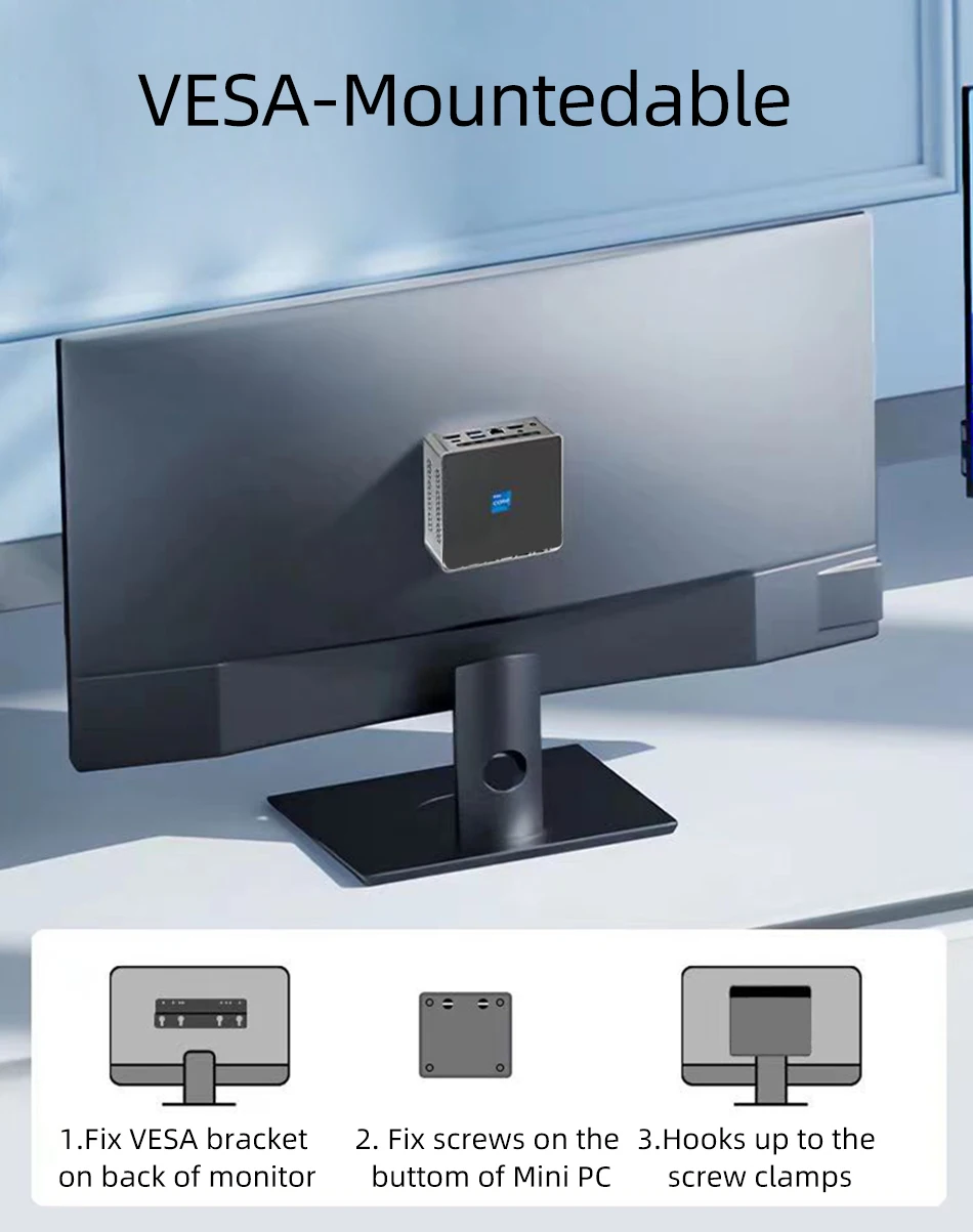 Mini PC de oficina en casa procesador Intel N200 DDR5 M.2 NVMe SSD WiFi6 Windows11 2x Ethernet USB3.2 tipo C HDMI2.1 DP 4K pantalla