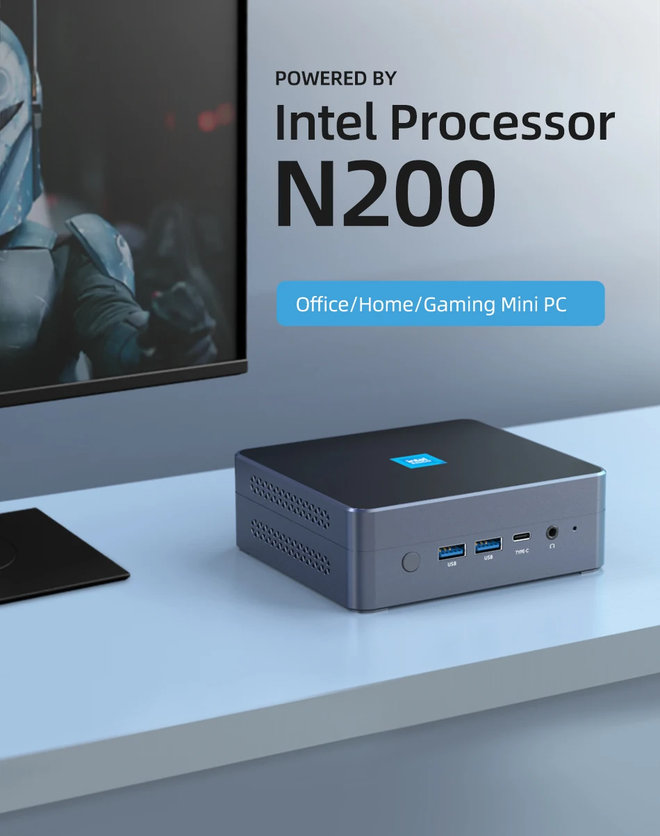 Mini PC de oficina procesador intel N200 16GB DDR5 1TB M.2 NVMe SSD WiFi6 Win11/Win10 tipo C 2x Ethernet HDMI DP