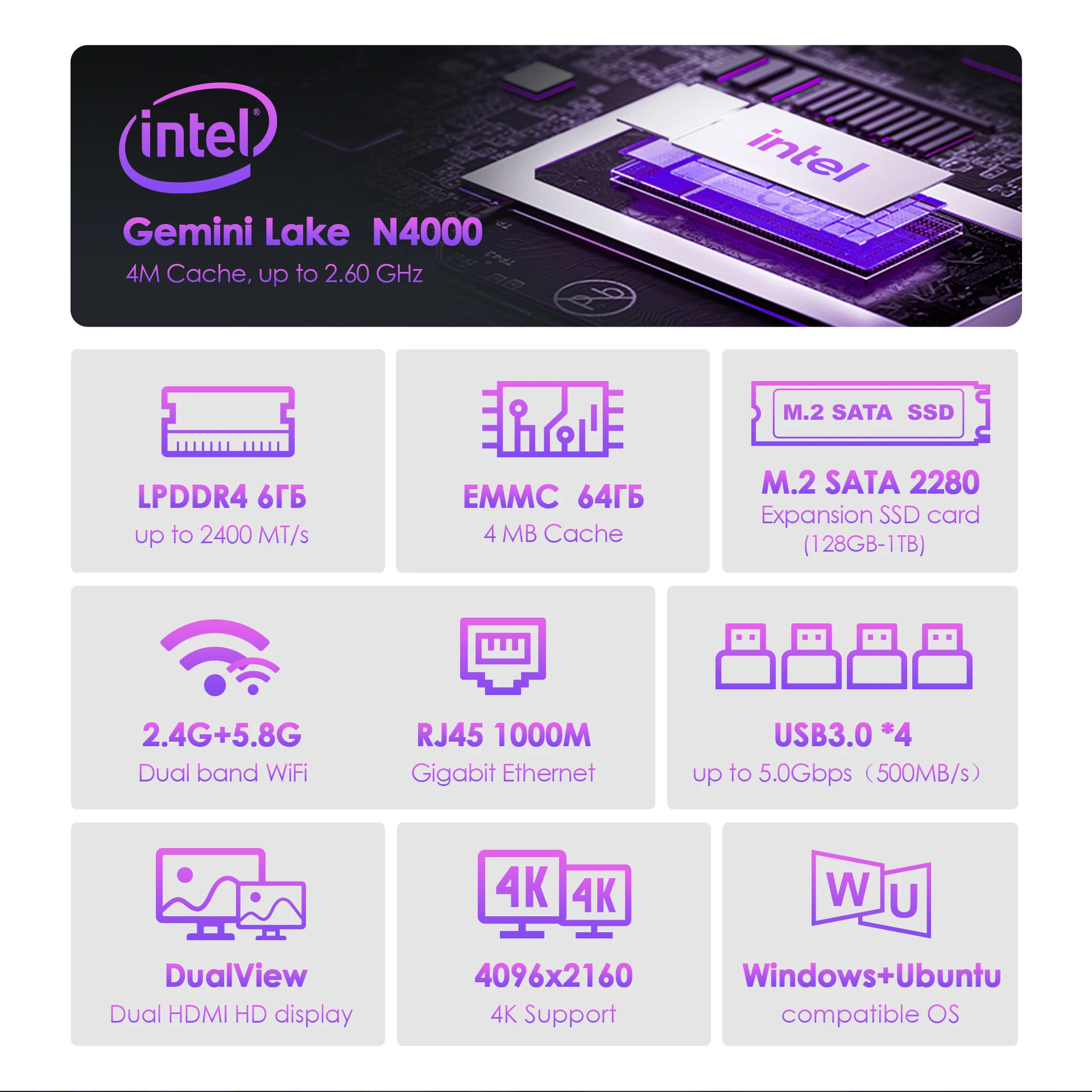 Comprar Mini PC Palm sin ventilador Intel GEMINI LAKE N4000 6G LPDDR4 64G EMMC Windows11 Dual HD-MI Bluetooth Mirco ordenador TV BOX pequeño PC