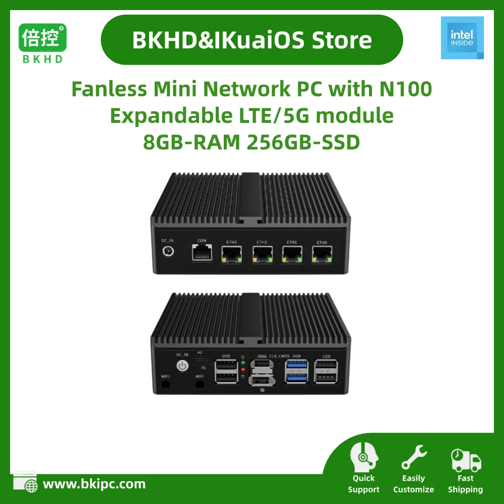 Comprar Mini PC de red sin ventilador con Intel N100 4x2,5 GbE 8GB RAM 256GB SSD módulo LTE 5G expandible para Gateway Firewall G30W-1264NP4L5G