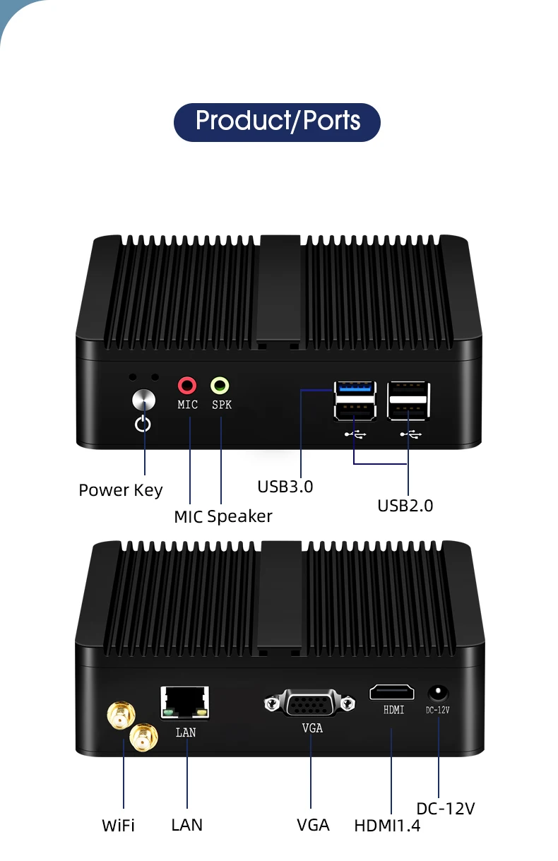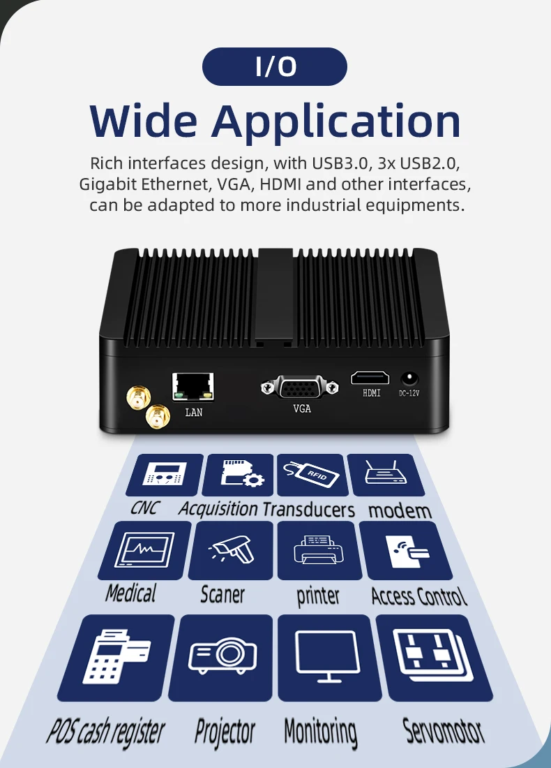 1.Compre sin RAM sin opción SSD, la mini PC viene sin WiFi y las antenas preinstaladas;2.Compre mini PC con opción RAM y SSD, la mini PC viene con WiFi y antenas preinstaladas;3. La mini PC viene sin módulo 3G/4G LTE preinstalado, contáctenos si lo necesitaComprar Mini PC sin ventilador Intel Celeron J1900 compatible con Windows7/8/10 Linux Gigabit Ethernet WiFi HDMI VGA pantalla ordenador integrado