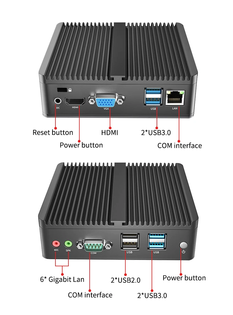 1*Realtek RTL8111E Gigabit Ethernet, 2*USB3.0, 1*VGA, 1*HDMI, 1*DC-IN
