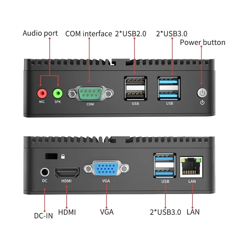 2*Audio port, 1*COM interface, 2*USB2.0, 2*USB3.0, 1*Power button