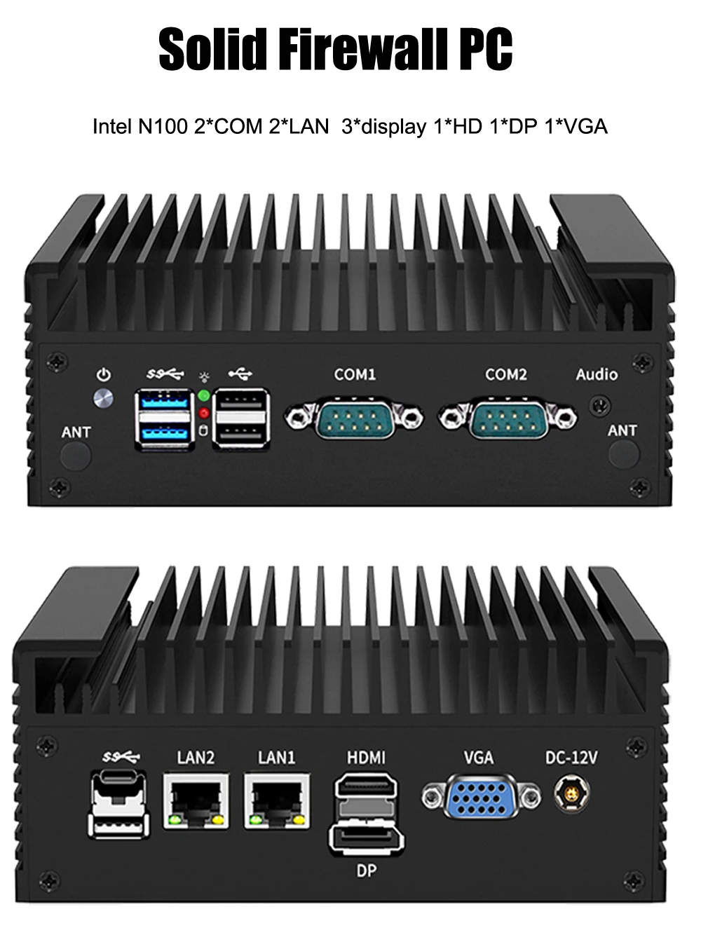 Comprar Mini PC sin ventilador Intel N100 de 12. a generación 2xRTL1118 RJ45 2 * COM NVMe 1 * DP 1 * HD 1 * VGA 1 * computadora firewall tipo C Win11 enrutador servidor PC