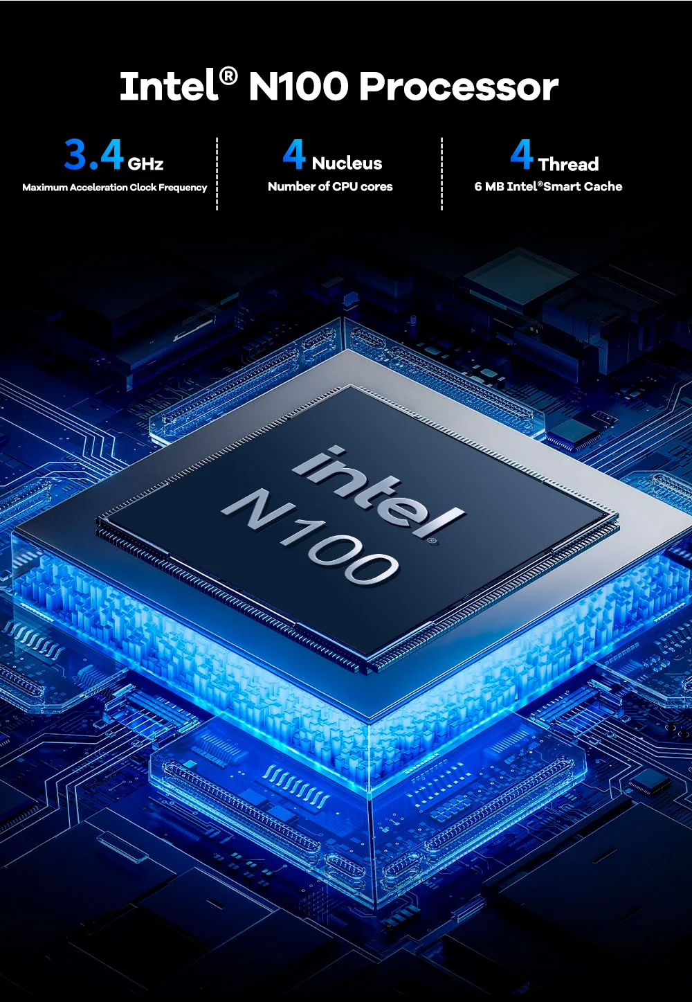 Intel Alder Lake N100 (Cache de 6 MB, 4 hilos centrales, máx. 3,4 GHz)