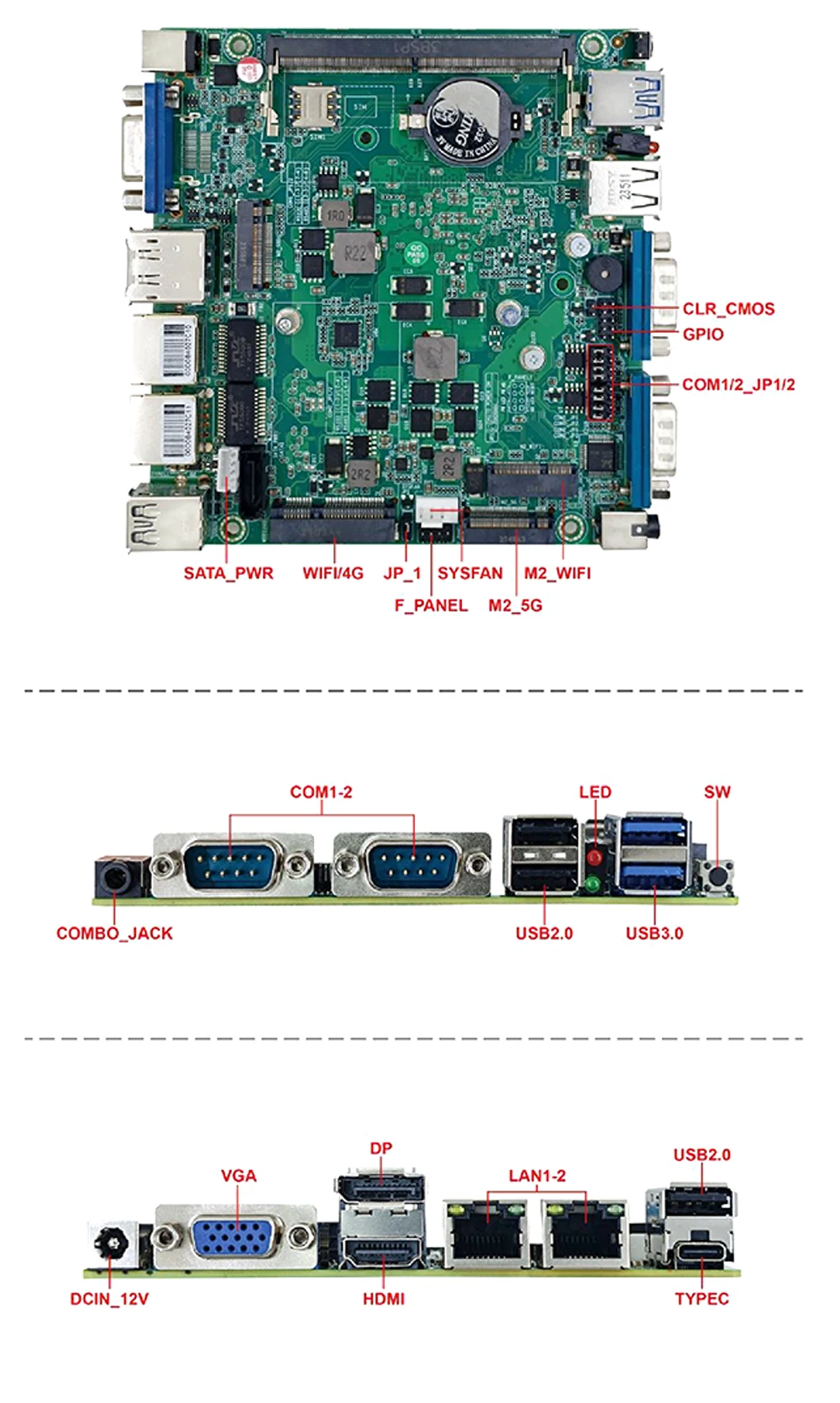 -2xLAN RJ45, 2xUSB3.2, 3xUSB2.0, 1xType-C, 2xCOM RS232/RS485, 1xHDMI, 1xDP, 1*VGA, 1xAudio.