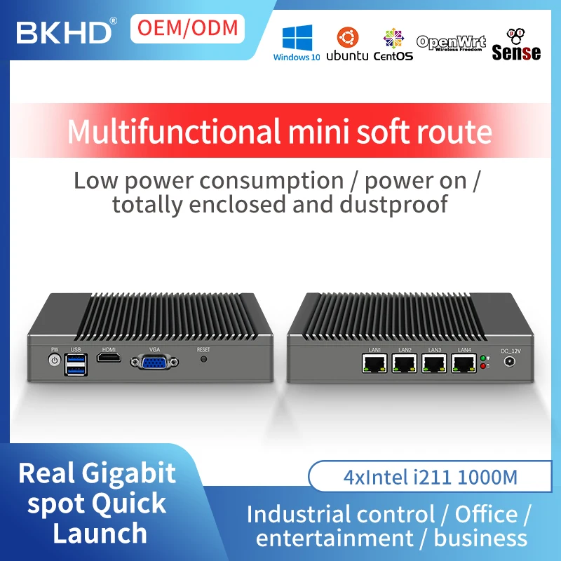 Comprar Mini PC sin ventilador J1900 J4125 CPU 4 Gigabit LAN HDMI VGA incrustado ordenador Industrial Soft VPN Firewall WiFi Router para el hogar