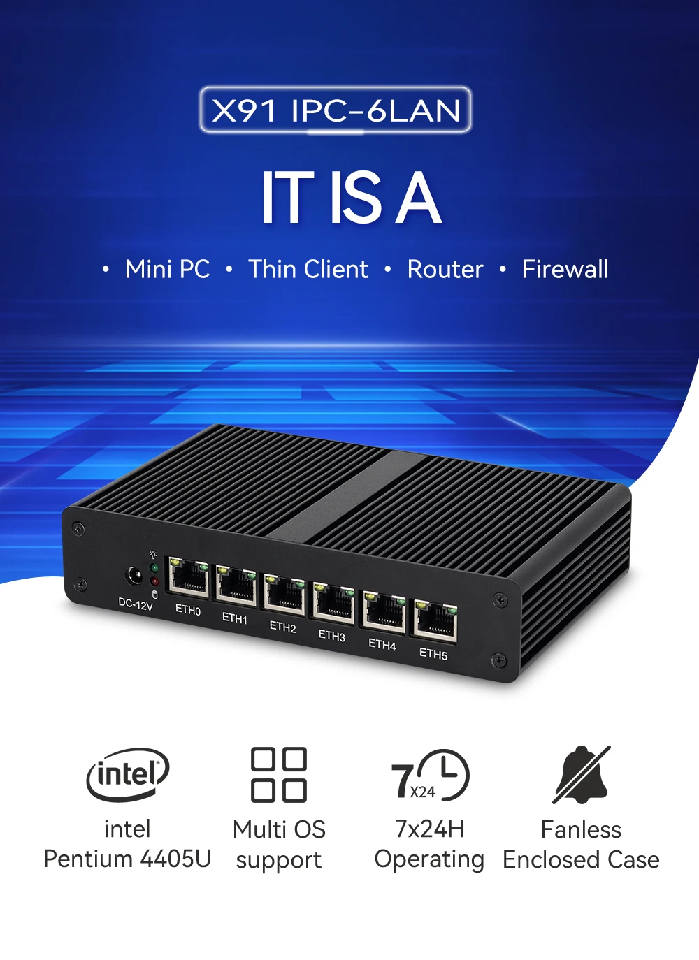 Comprar Mini PC sin ventilador Pentium 4405U 6x Intel Ethernet i211AT PXE WOL WiFi 3G 4G SIM Windows Linux Pfsense X86 Router OS Firewall