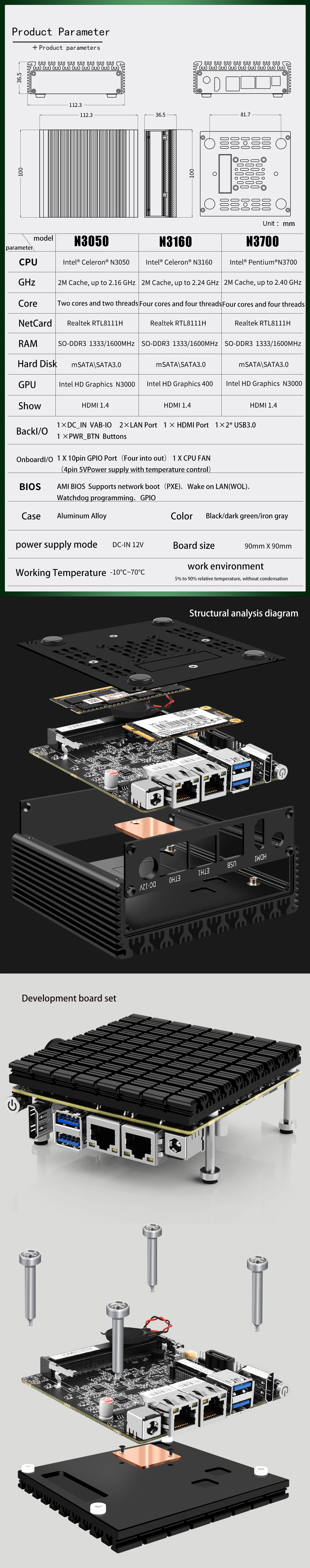 Notado:La CPU N3160 y N3700, esta actualización de producto ha agregado HDMI y WiFi
