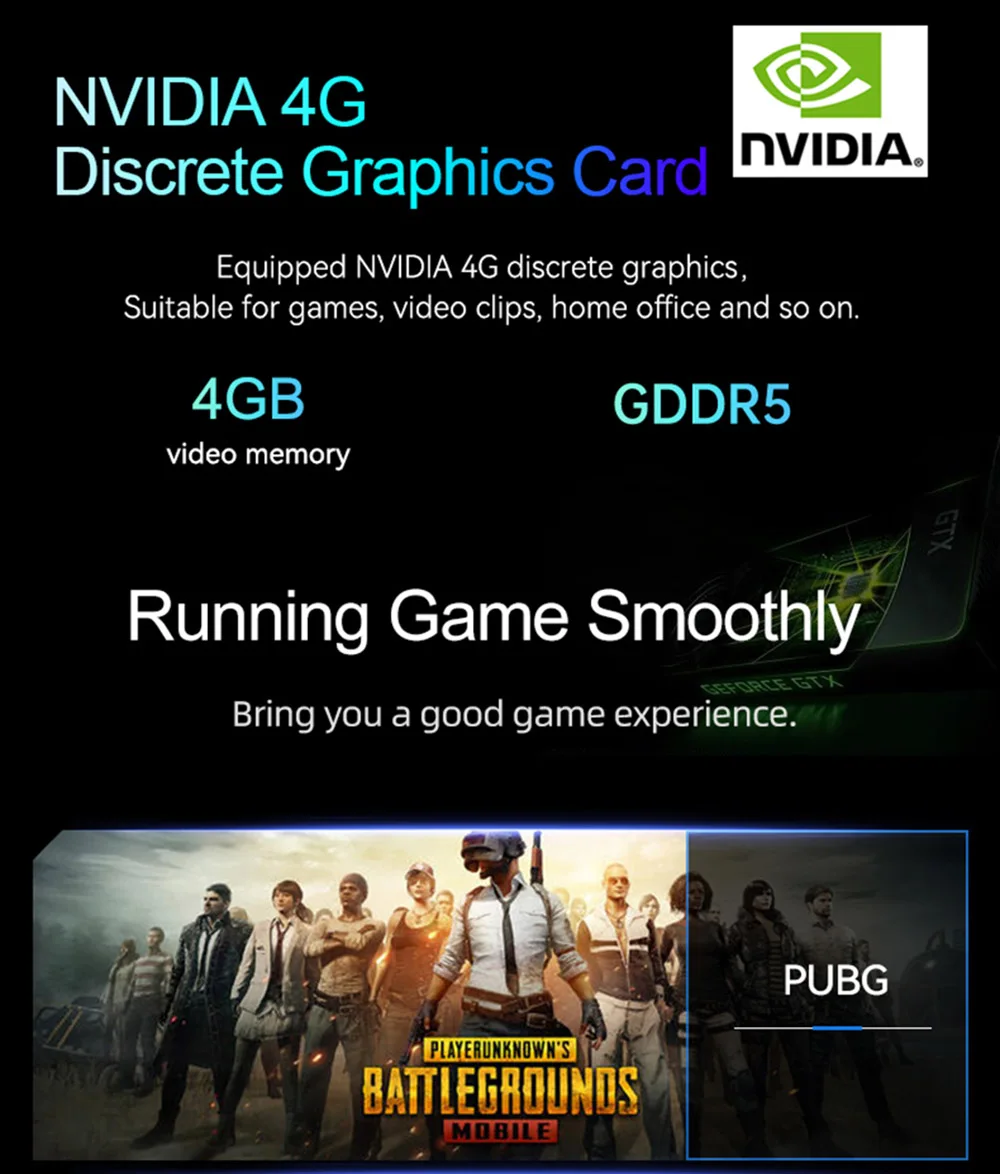 ESTILO MINI_PC TAMAÑO 180mm * 180mm * 51mm Material Plástico + metal Peso Aproximadamente 0,8 kg CPU Intel® Core i5- 12450H GPU NVIDIA GTX1060 GDDR5 4GB RAM 2 * ranura para SSD 1 * M.2 22*80 SSD compatible con PCIE * 4,NVME y SATA3.0 HDD 1 * HDD de 2,5 pulgadas y 7,0mm WIFI Interfaz M.2, compatible con 802.11B/G y 802.11B/G/N y AC