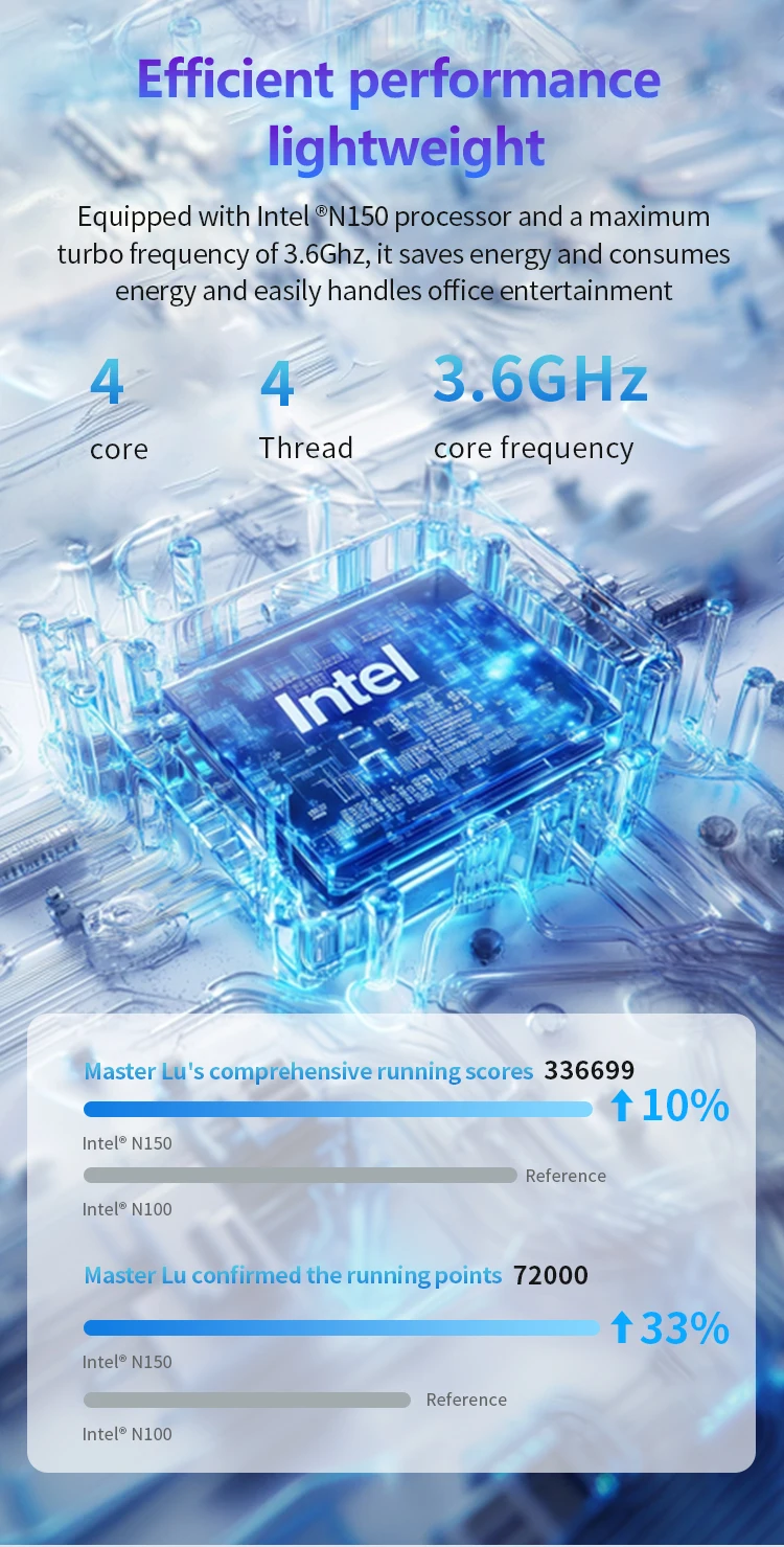 Mini PC con ventilador barato Intel N150 1 * DP 1 * HD WiFi5 1 * LAN RJ45 Windows 11 ordenador de bolsillo pequeña caja de TV 16G DDR4 1TB SSD PC de oficina/hogar