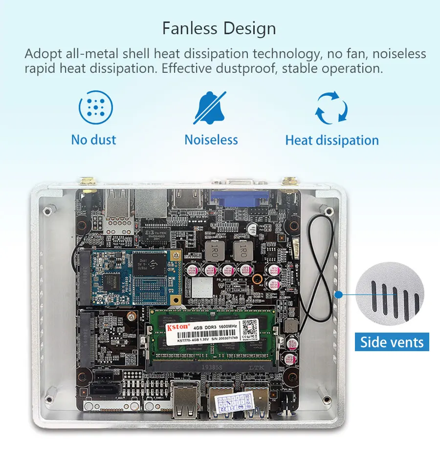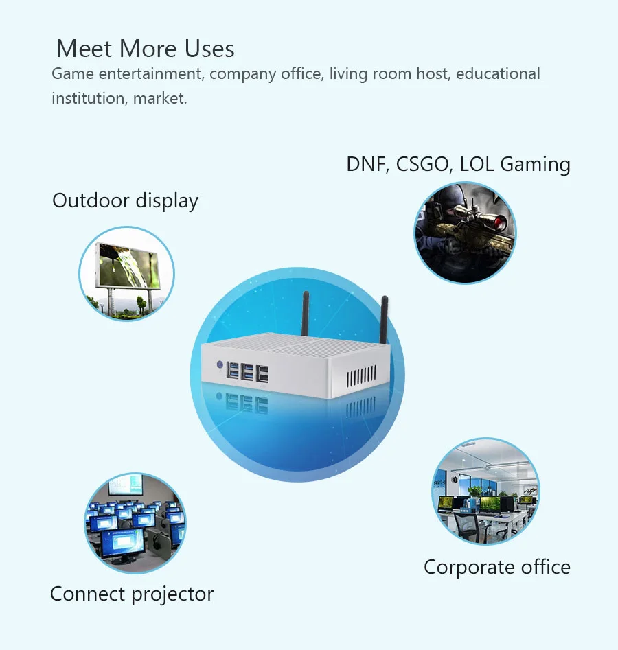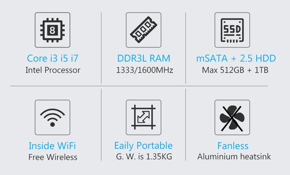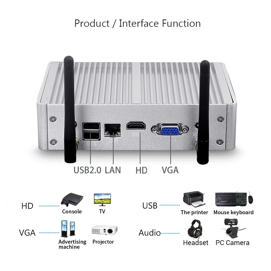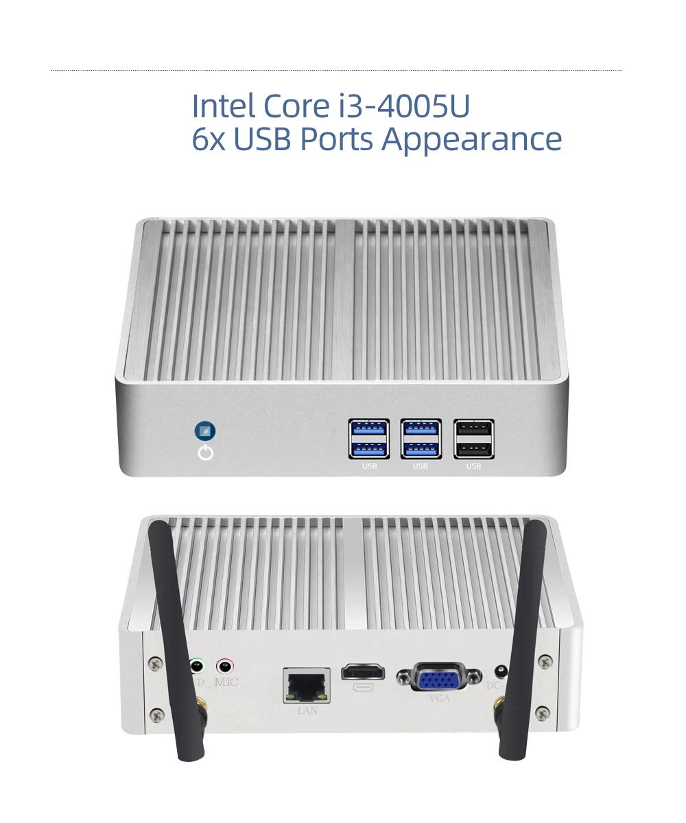 Mini PC sin ventilador Windows 10/8/7 Intel Core i3 5005U, i5 5200U/5300U, i7-4500U Celeron 2955U, 300M WiFi, VGA HDMI compatible, 8 puertos USB