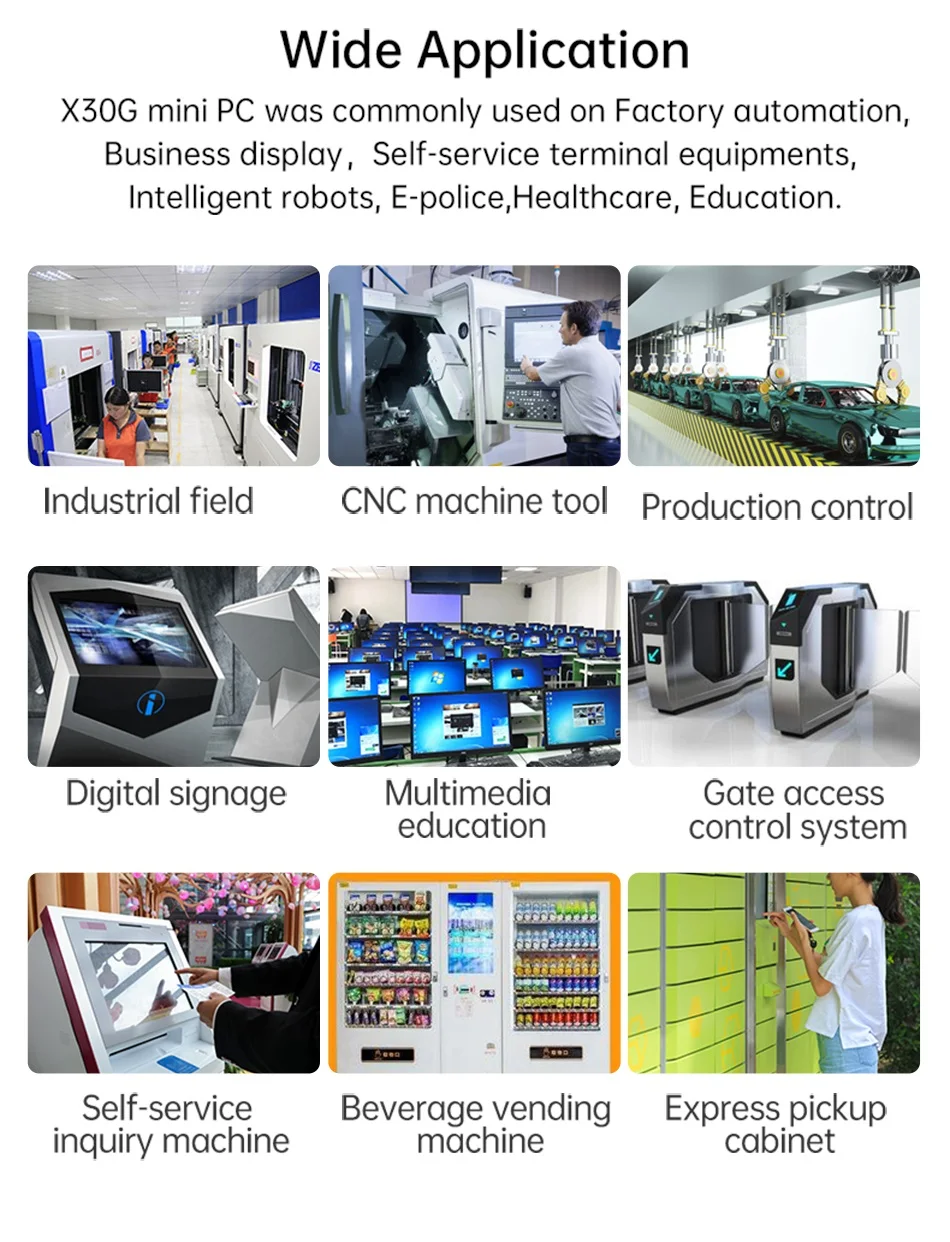 Impulsado por el procesador Intel Celeron J4125/J6412/J1900/J2900/N2840, el X30G ofrece un rendimiento excepcional no solo en computación personal sino también en soluciones informáticas inteligentes e industriales.2x LAN y 2 x puertos COM, lo que lo convierte en un verdadero sistema inteligente para diversas aplicaciones, como aplicaciones de automatización de fábricas, aplicaciones de red y aplicaciones de comunicación.