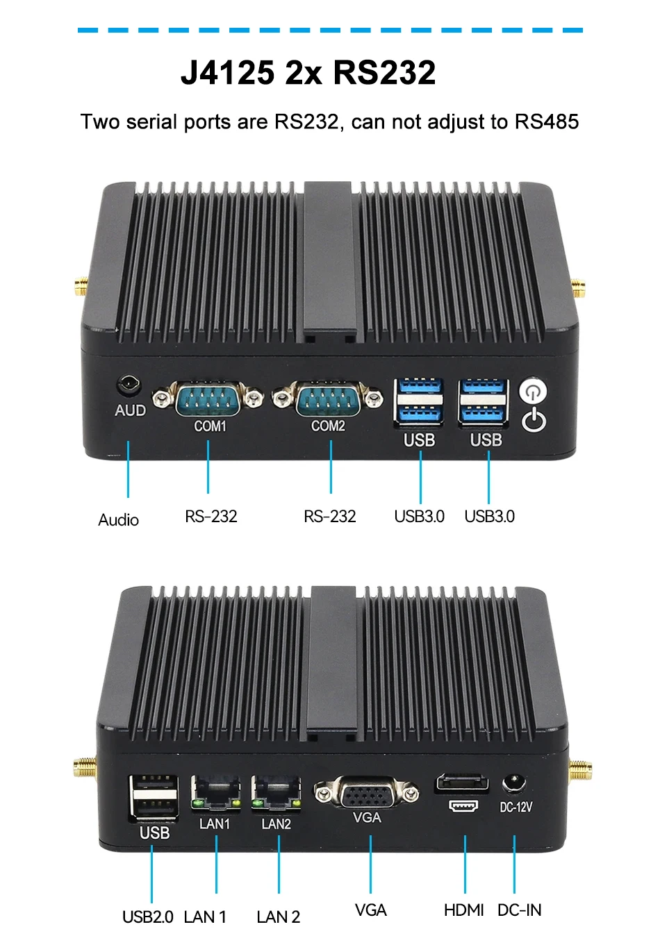 Mini PC industrial sin ventilador X30G-2xLAN 2xCOM