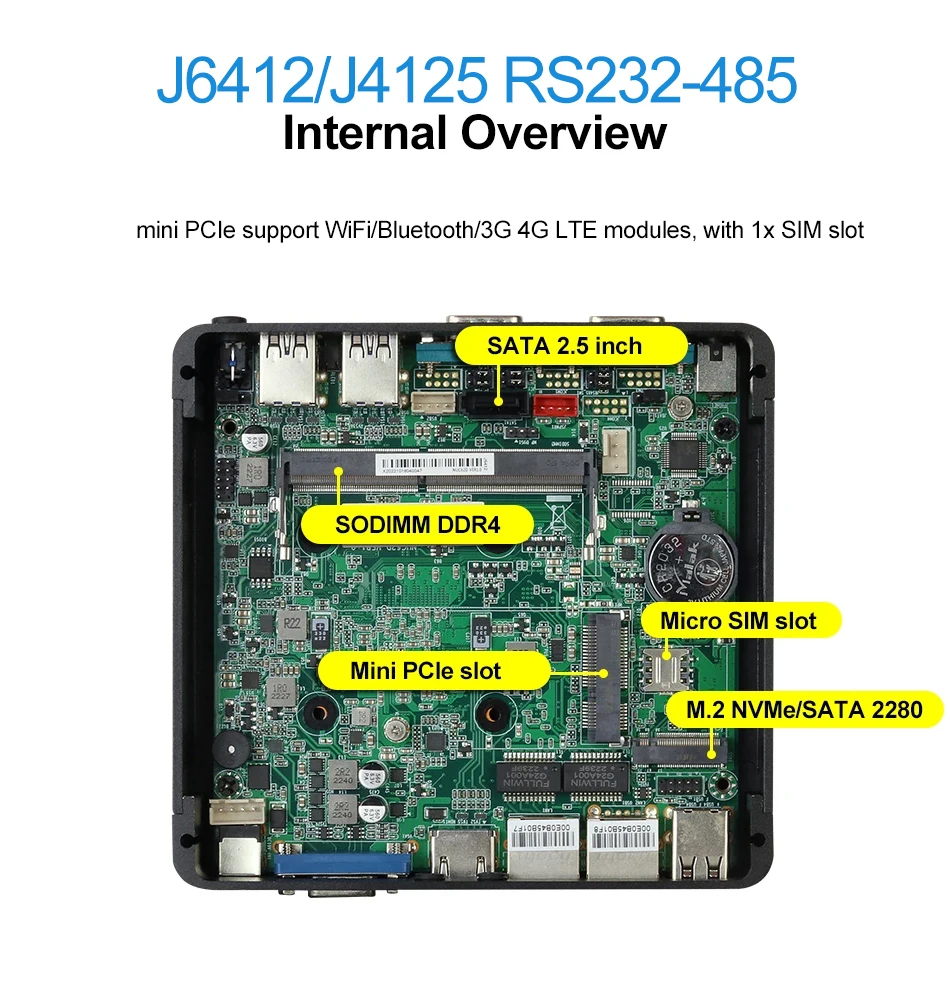 J6412/J4125: 1x DDR4 SO-DIMM,
