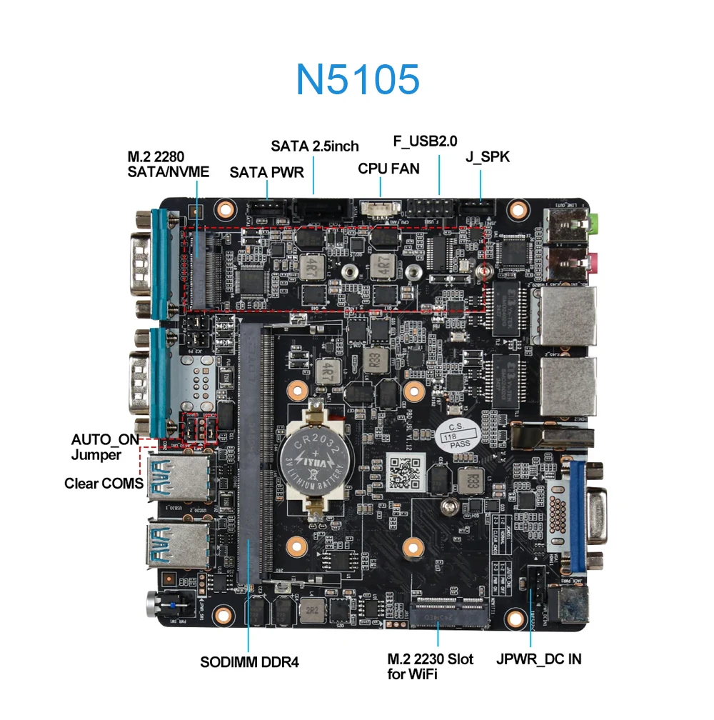 N5105 admite 1 SSD NVMe M.2, 1 SATA de 2,5 pulgadas (preinstalación de SSD NVMe N.2)