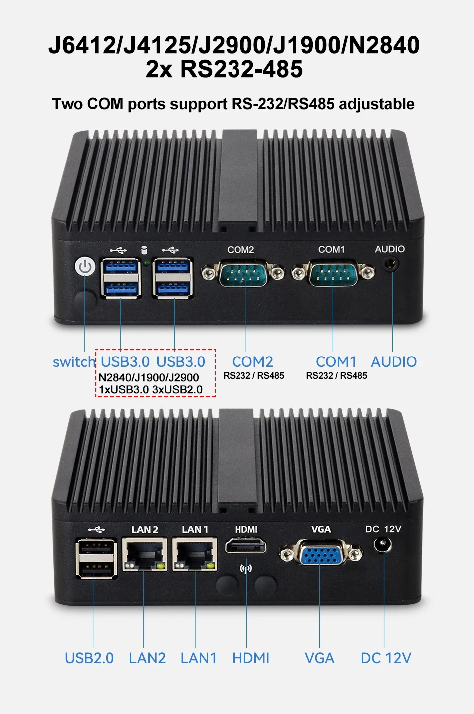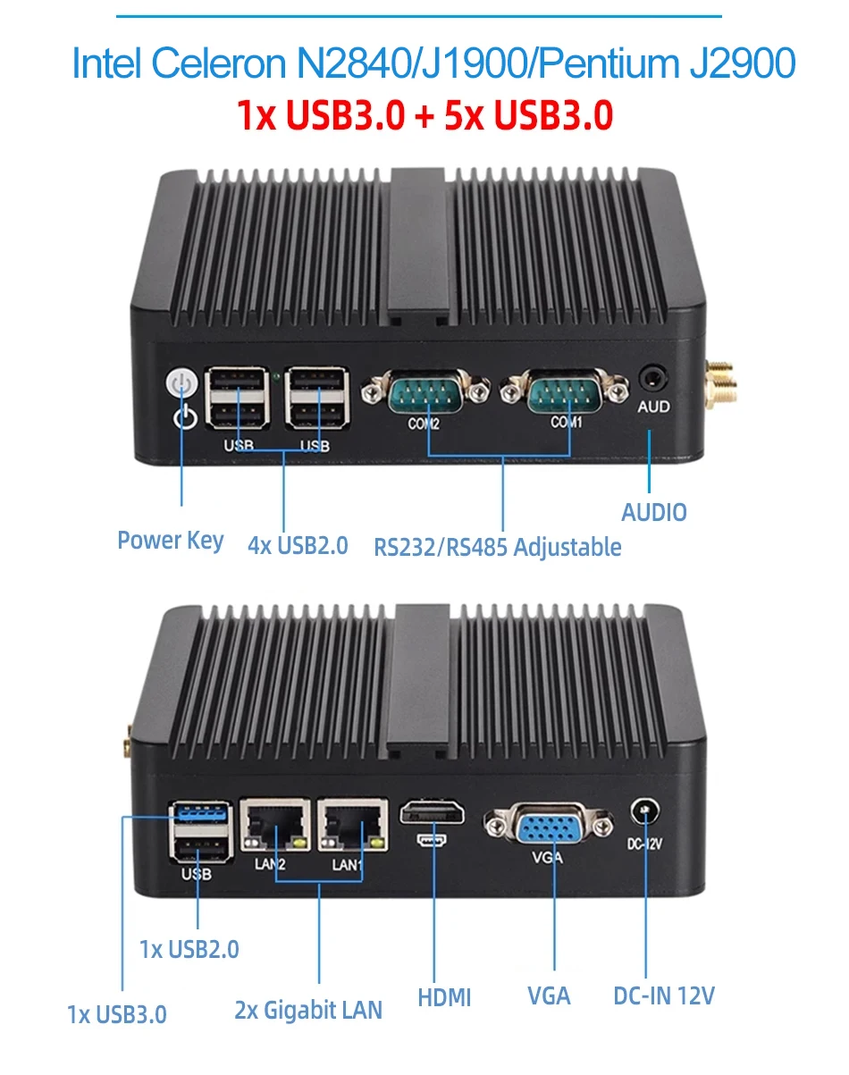 4x USB 3.0 (N2840 1x USB3.0, 3x USB2.0)