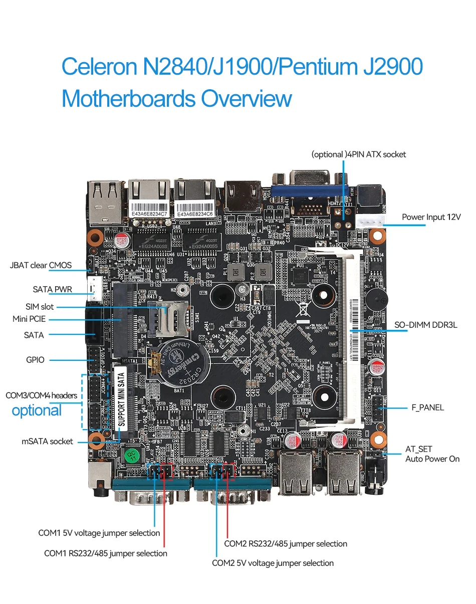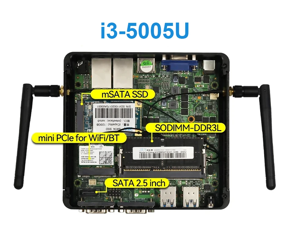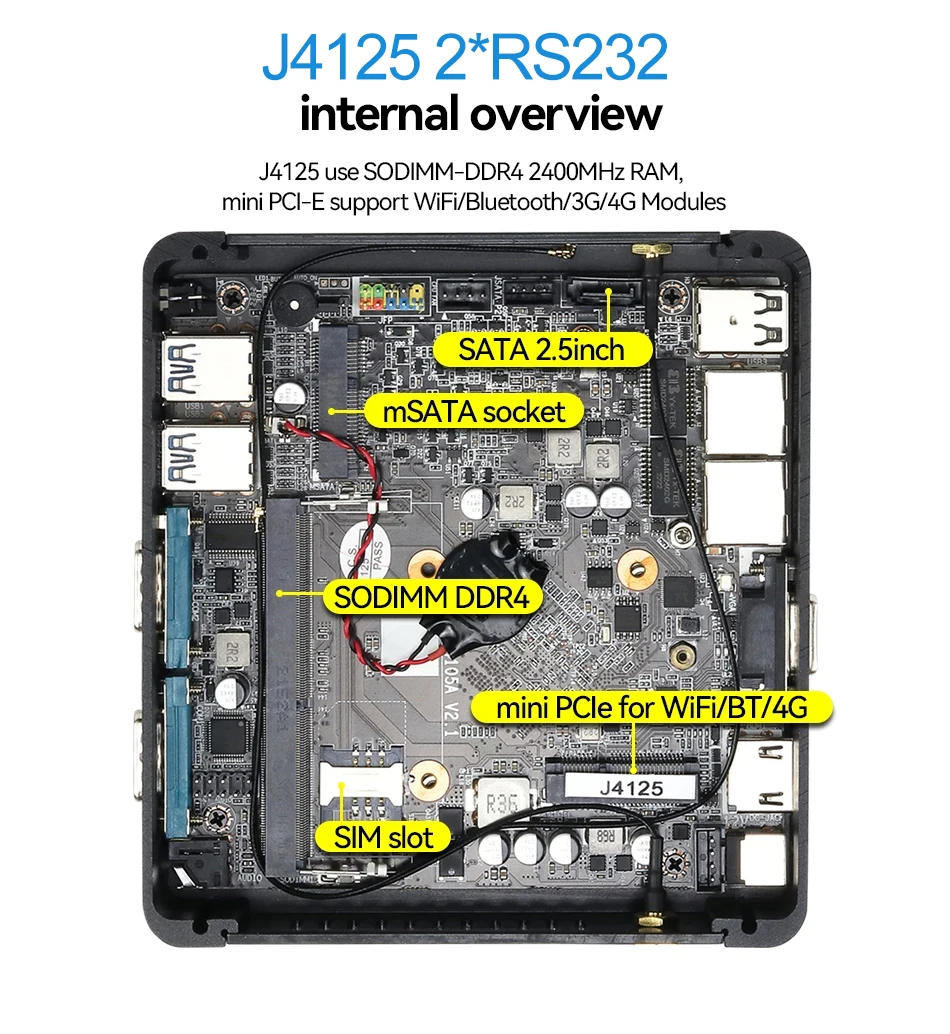 J4125/J2900/J1900/N2840/3805U admite 1 SSD mSATA, 1 disco duro SATA de 2,5 pulgadas (SSD tipo mSATA preinstalado)