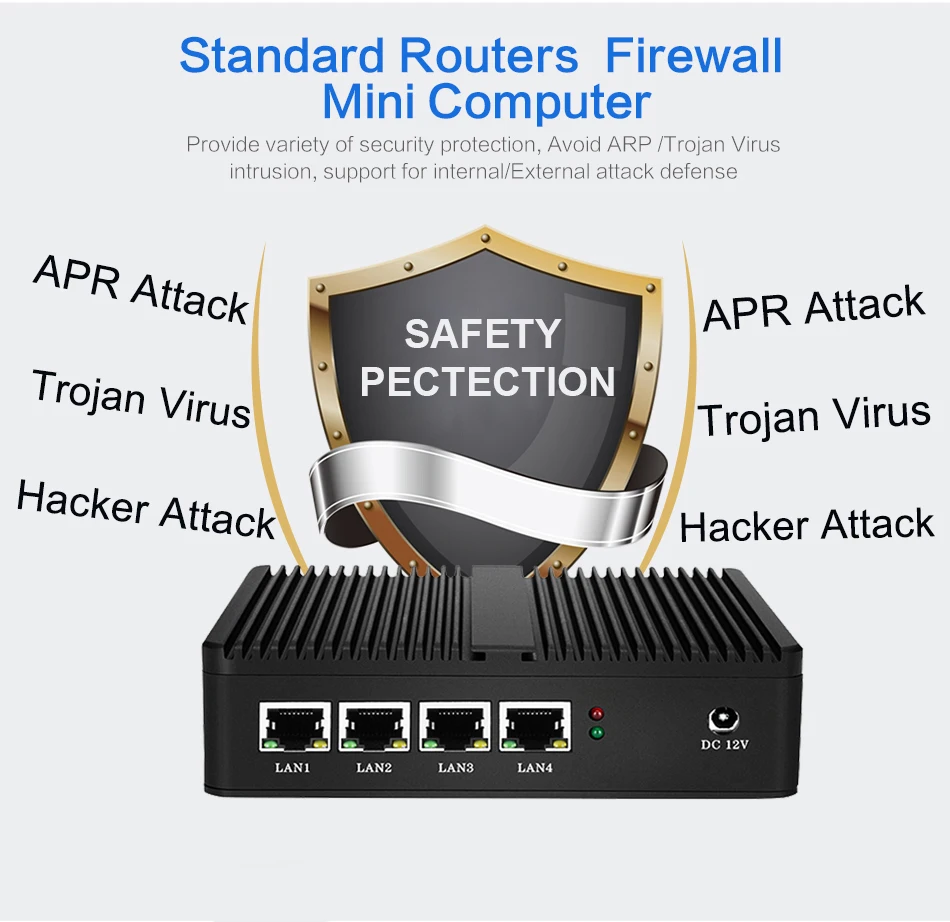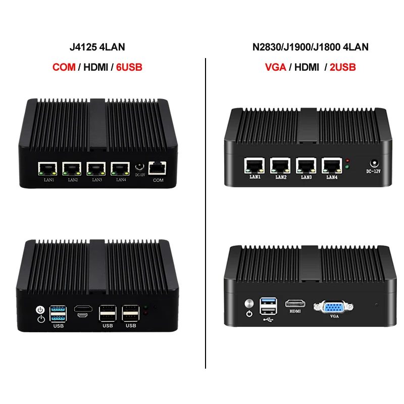 Enrutador sin ventilador Mini servidor de PC Firewall Intel Celeron J1900 N2830 J4125 4LAN Gigabit Ethernet Mini ordenador Windows 10 PfSense Linux