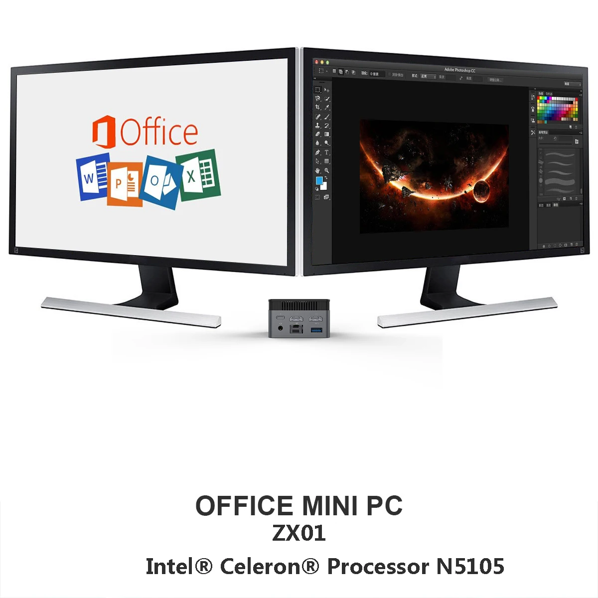 Comprar Mini PC ZX01 Intel N5105 2,9 GHZ, Windows 11, LPDDR4, 8GB, 128GB, 256GB, 512GB, SSD,1000M, Wifi 5G, BT4.2, ranura para tarjeta TF, ordenadores de escritorio