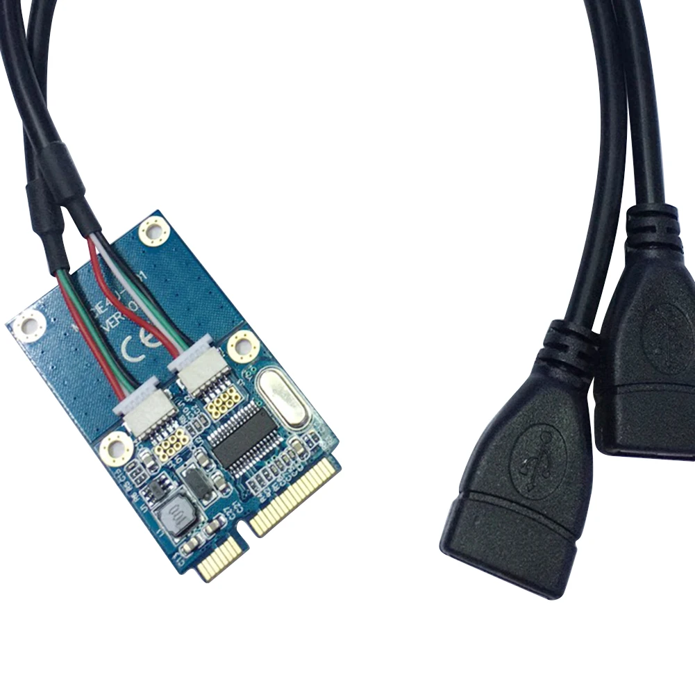 Comprar Mini PCI-E A Adaptador USB Dual mPCIe a 5 pines 2 puertos USB 2,0 tarjeta convertidora