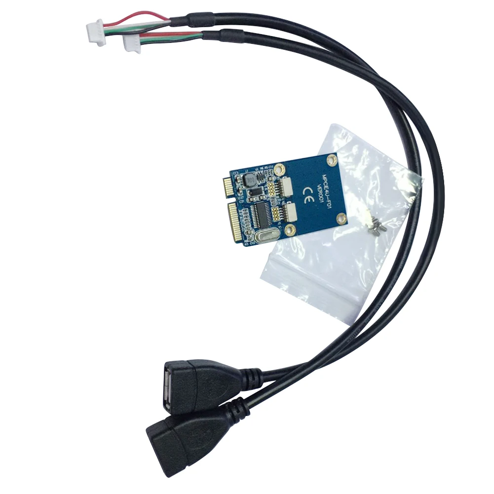 Características: Extienda 2 puertos USB2.0 estándar a través del puerto Mini PCI-E. Aplicación: Receptor de ratón inalámbrico USB Adaptador USB compatible con Bluetooth Adaptador para tarjeta de red Wi-Fi USB Memoria flash USB Lector de tarjetas USB (micro SD / M2) Banca en línea, escudo U y otros dispositivos USB Adecuado para la mini Tarjeta de altura completa y media altura sin controlador