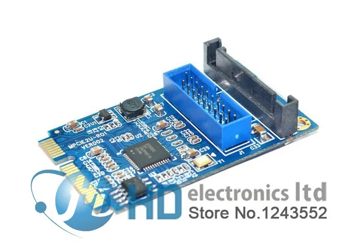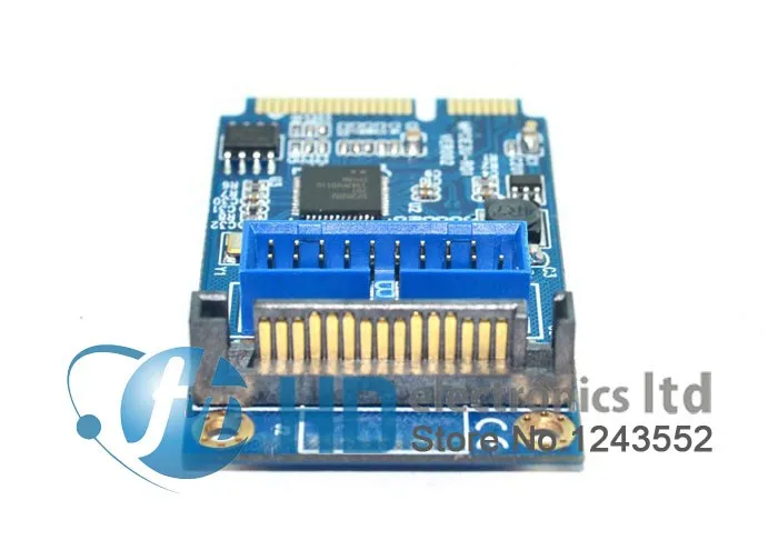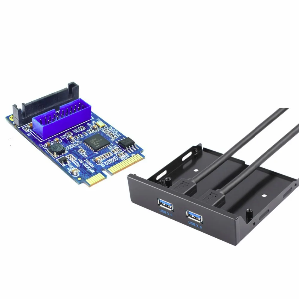 Comprar Mini PCI-express a 2 puertos USB 3,0 adaptador mini PCI-e a USB3.0 + 20 pines a 2 puertos usb3.0 hub 3,5 Bahía de disquete Panel frontal de Metal