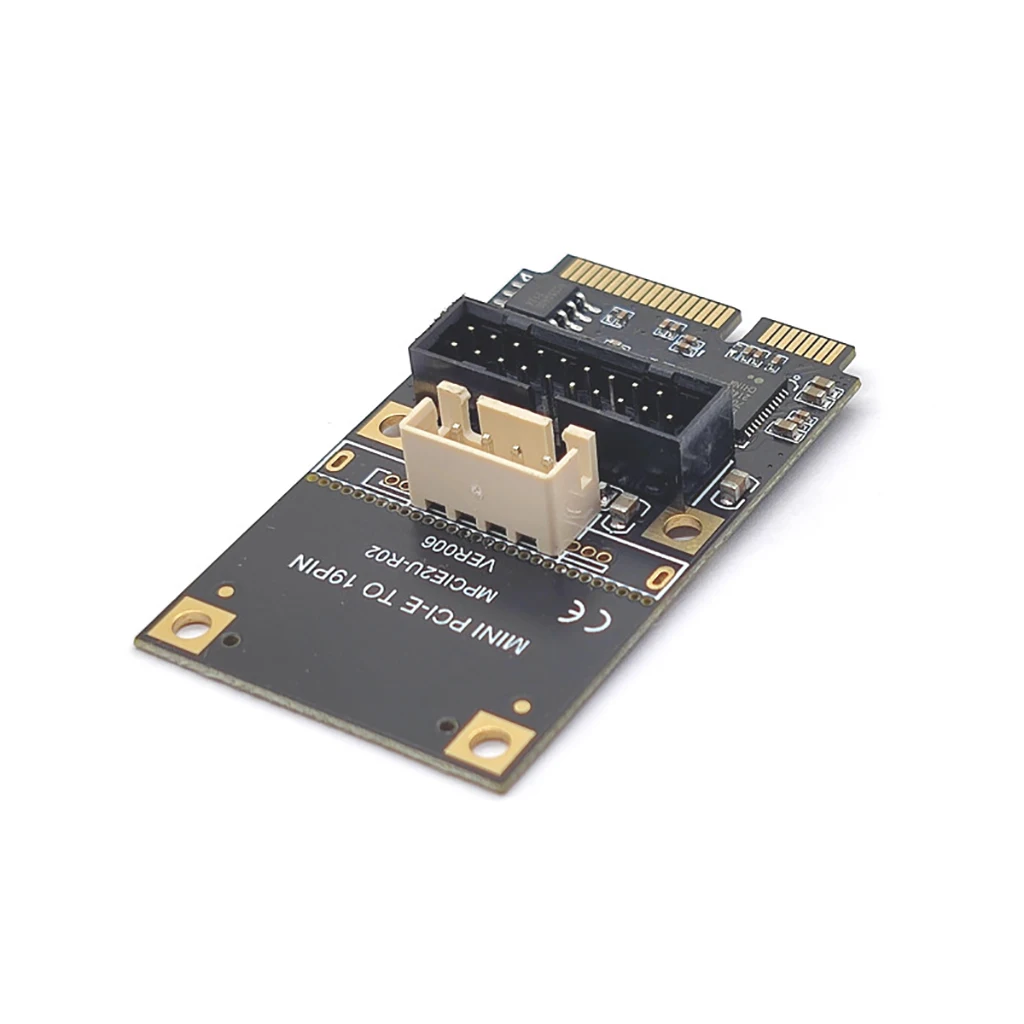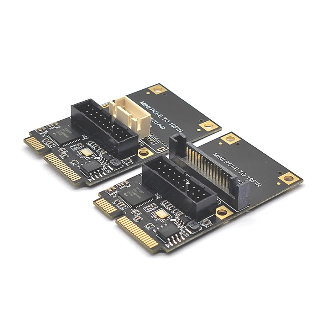 Comprar Mini PCIE a 19Pin USB3.0 Riser Board tarjeta de expansión, 2 puertos USB 3,0 USB3.2 GEN1, adaptador controlador 4Pin/SATA Power NEC Chip 5gbps