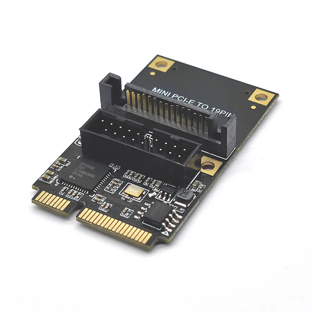 Comprar Mini PCIE a 19Pin USB3.0 Riser Board tarjeta de expansión, 2 puertos USB 3,0 USB3.2 GEN1, adaptador controlador 4Pin/SATA Power NEC Chip 5gbps