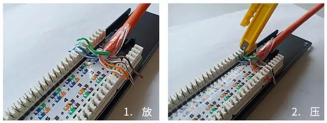 Pele cables y alambres de datos UTP/STP de par trenzado y termine los cables en 110 bloques.