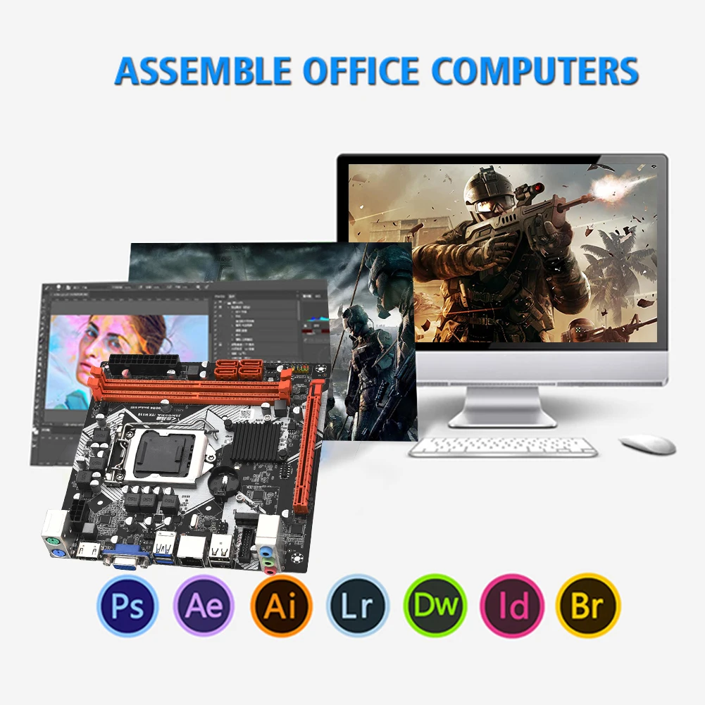 Placa base H110 LGA1151 para ordenador DDR4 32GB Mini placa base compatible con HDMI VGA M.2 NVME ranura SATA 3,0 compatible con CPU 1151 6/7/8/9th