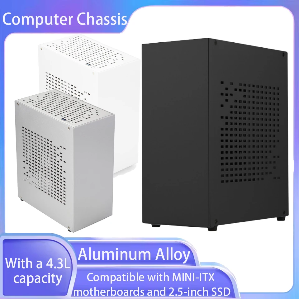 Caja de escritorio compatible con placa base Mini ITX, tarjeta gráfica independiente para juegos, fuente de alimentación 1U, chasis de ordenador portátil de aleación de aluminio, accesorios para PC
