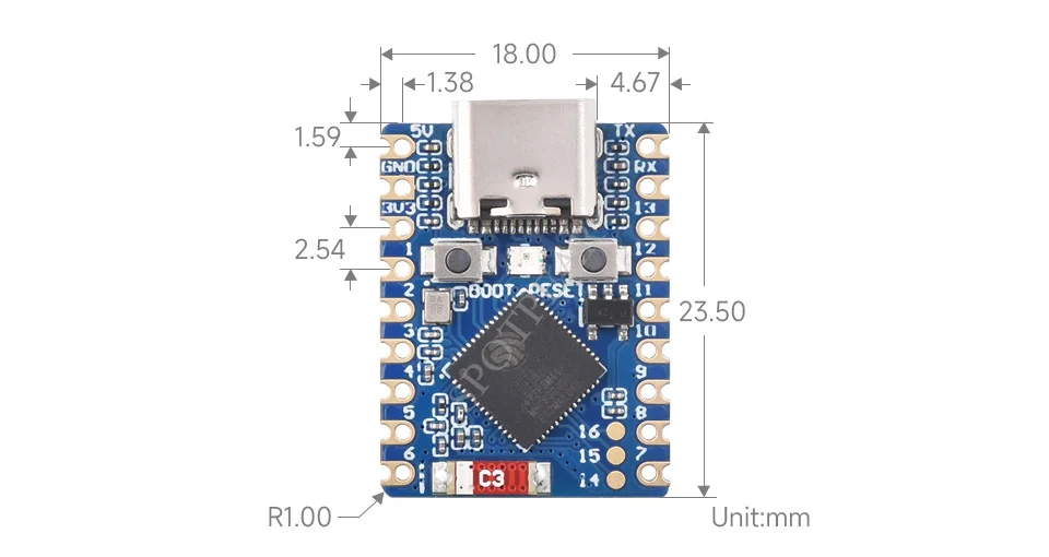 La mini Placa de desarrollo de 2. 000 "se basa en el procesador de doble núcleo de la ESP32-S3FH4R2 y permite la ruptura de la mayoría de los pines dentro de un factor de forma pequeño. Utiliza un proceso de medio agujero y se puede soldar en tableros personalizados.