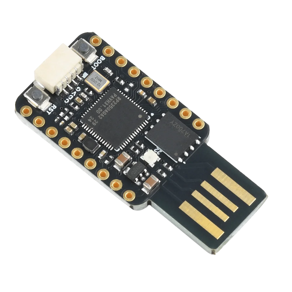 RP2350 USB Mini RP2350 Development Board, with onboard PCB USB-A male port, allowing you to worry about wires wirelessly and achieve true plug and play functionality; Under the extremely small board type, all unoccupied pins are led out, and the PCB edge adopts half hole technology, which can be easily and quickly integrated into the project.