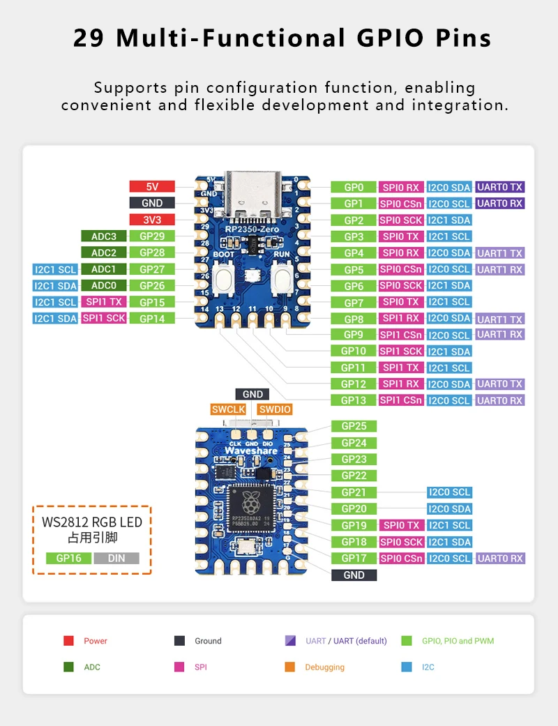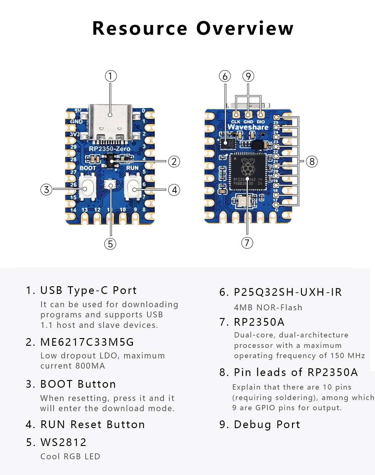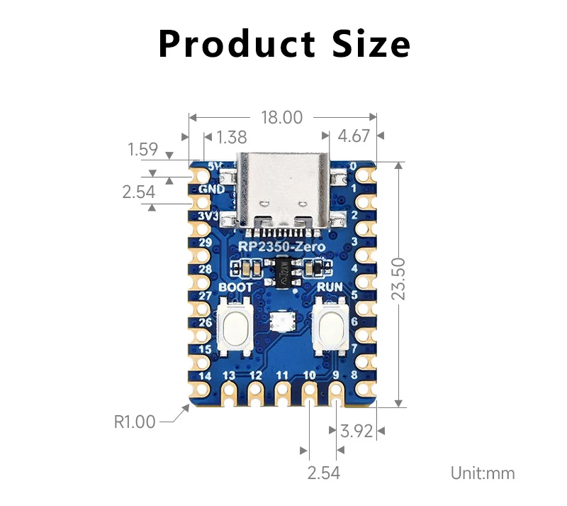 Mini placa de desarrollo RP2350-Zero basada en placa microcontroladora Raspberry Pi RP2350A procesador de doble núcleo de doble arquitectura