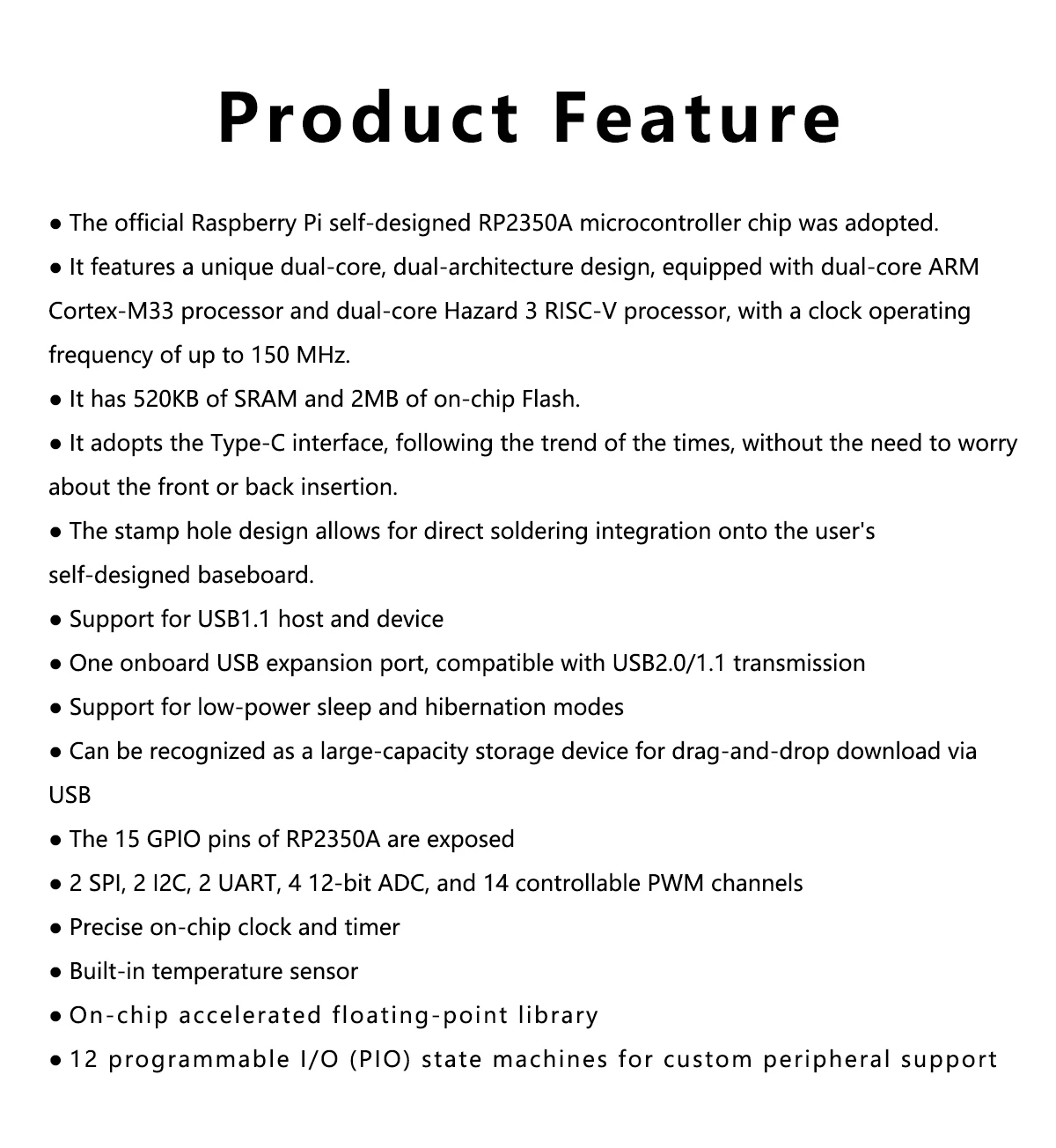 Comprar Mini placa de desarrollo RP2350-Zero basada en la placa microcontroladora Raspberry Pi RP2350A procesador de doble arquitectura de doble núcleo